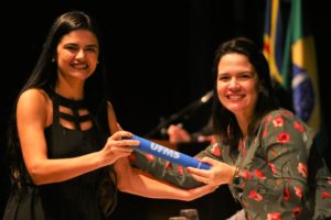 “Estamos sempre pensando em bolsas, em condições melhores. São coisas simples, mas hoje a gente tem licença maternidade na pós-graduação, nós temos fraldários na Universidade, para que a gente possa atender bem os pais e as mães […] O que eu quero falar é: não tenham medo, corram atrás dos seus sonhos e mudem o mundo que os cerca”.