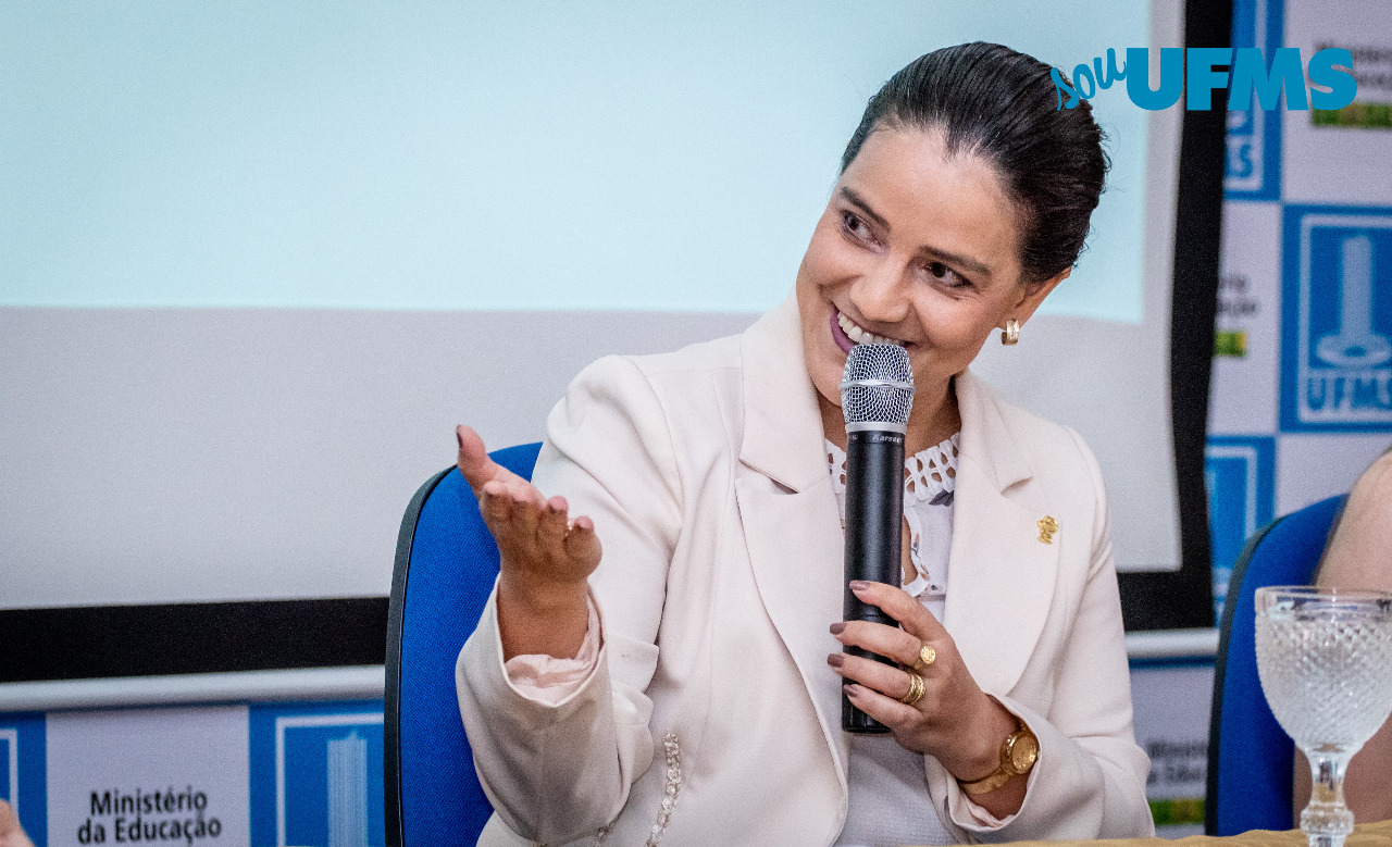 A vice-reitora Camila Ítavo parabenizou todos os professores pela celebração ao seu dia e também a organização. “É um prazer enquanto professora poder conhecer tantos casos de sucesso dos nossos alunos da UFMS e também dos nossos cursos, que têm obtido índices cada vez melhores de qualificação. O sucesso da graduação se deve aos alunos, professores e técnicos e é uma alegria ver essa qualidade irradiando também para a pós-graduação, com cursos de excelência. A Universidade dá as condições, mas está nas mãos de cada um de vocês a utilização para uma melhoria contínua. Parabéns pelo evento e que seja muito proveitoso para todos”, disse.