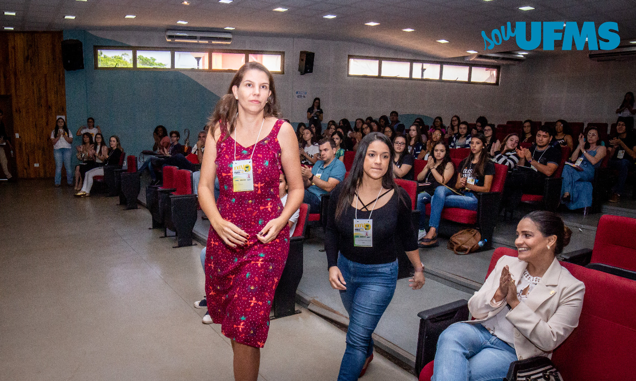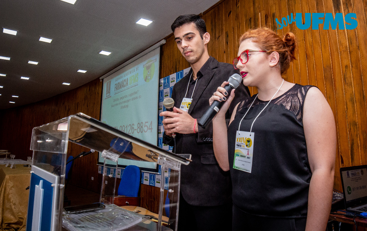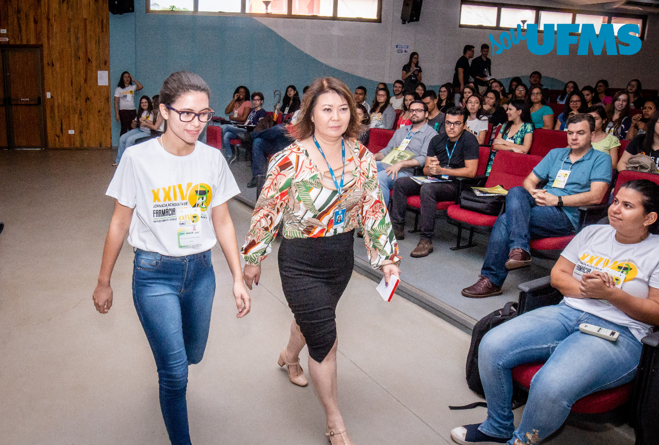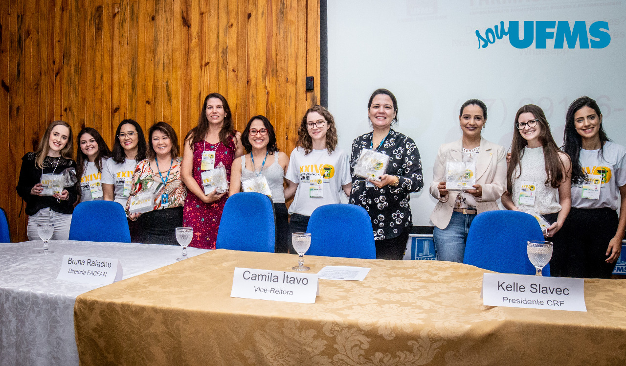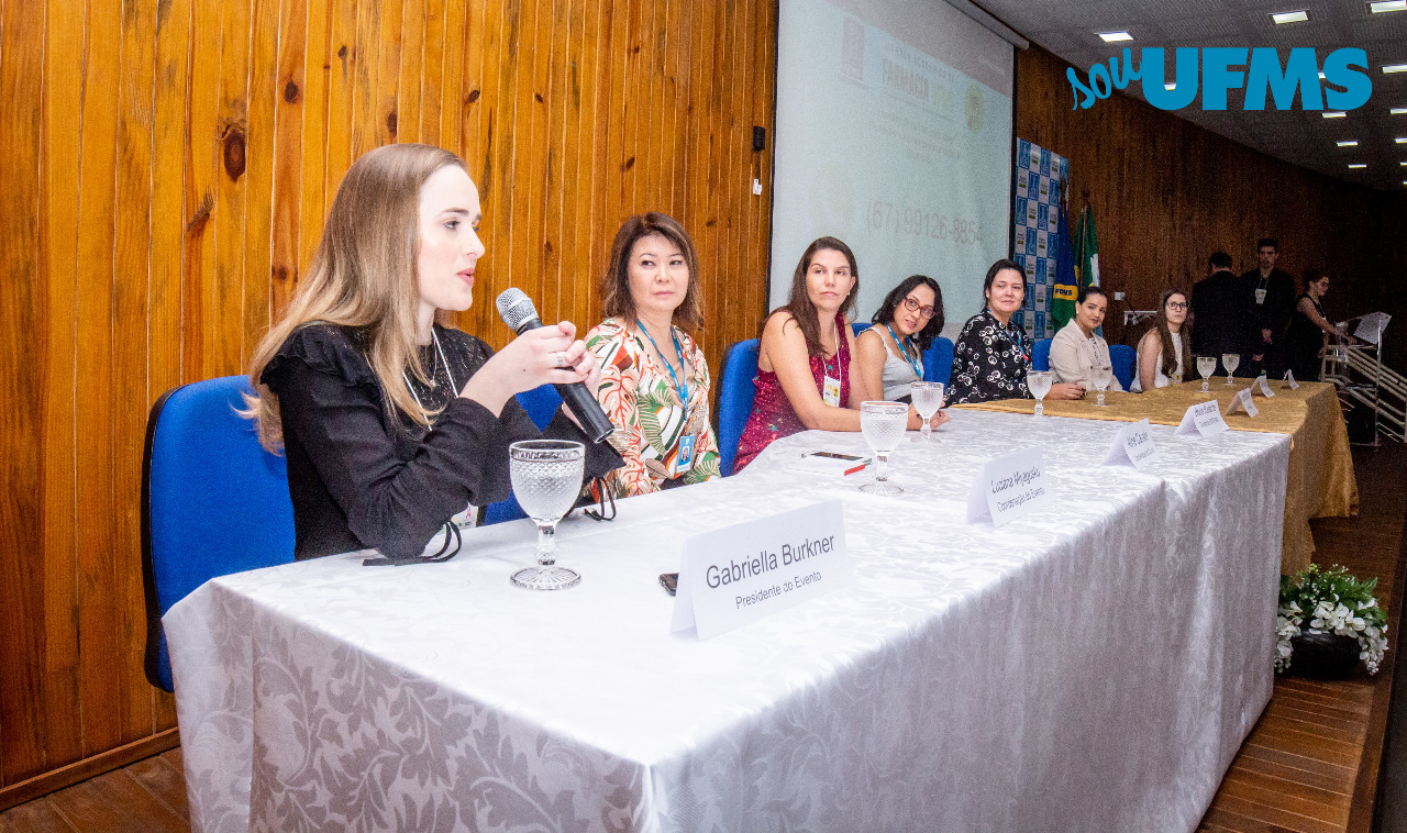 Participaram também da abertura a diretora em exercício da Faculdade de Ciências Farmacêuticas, Alimentos e Nutrição (Facfan), Bruna Rafacho; a coordenadora do curso de Farmácia, Aline Carollo; e a vice-presidente da comissão organizadora, Bruna Fleck.