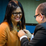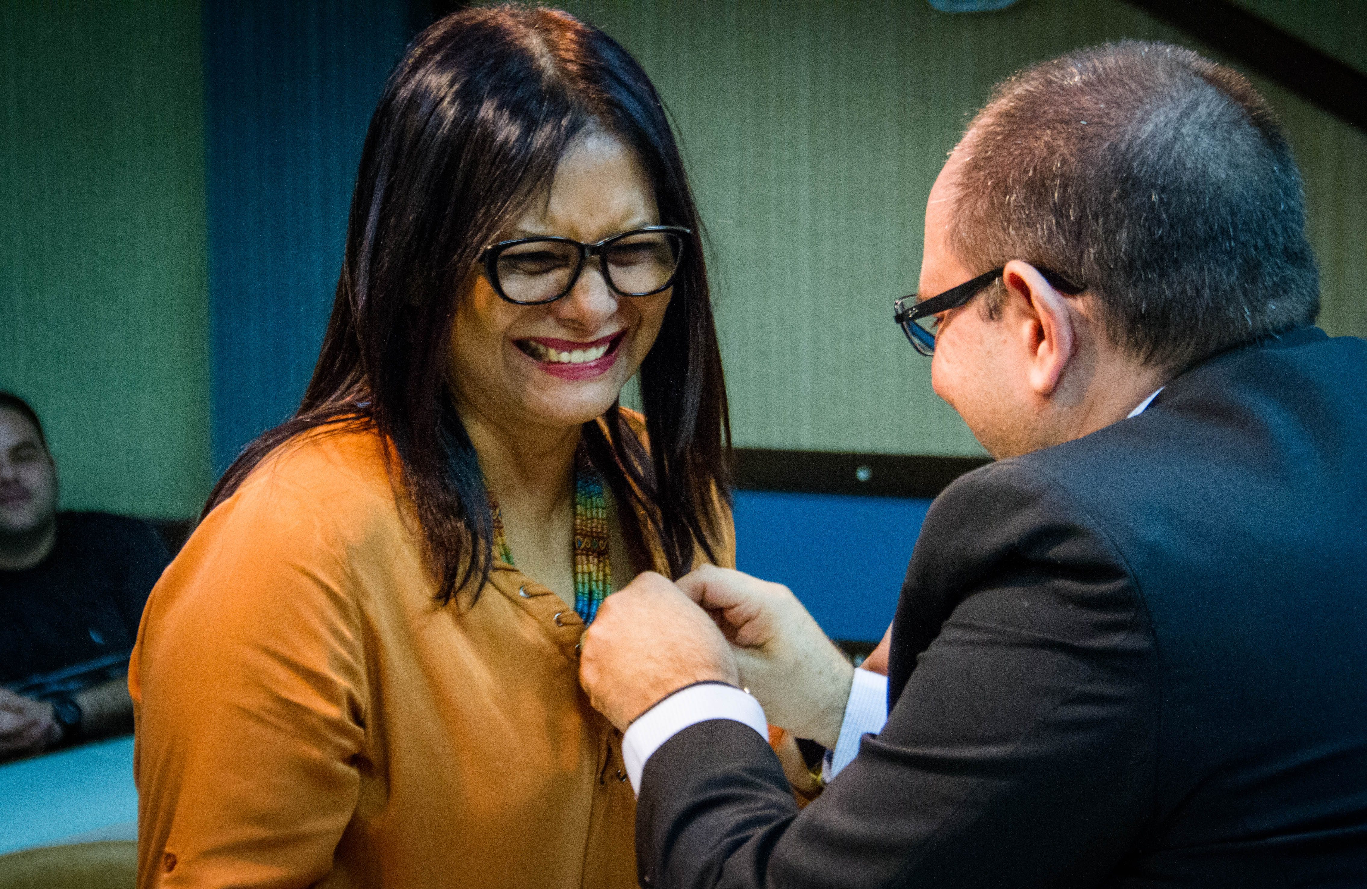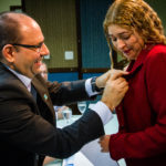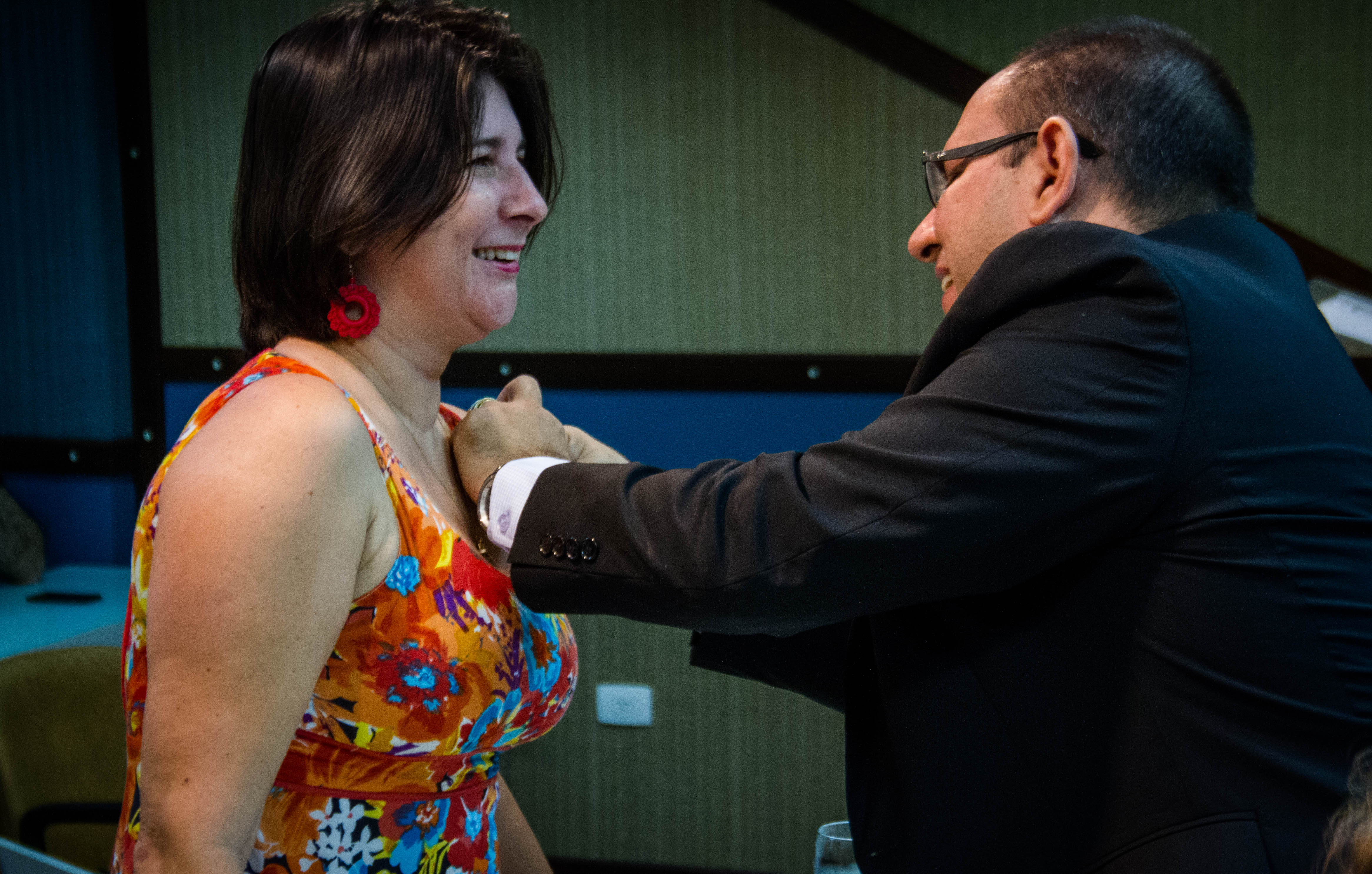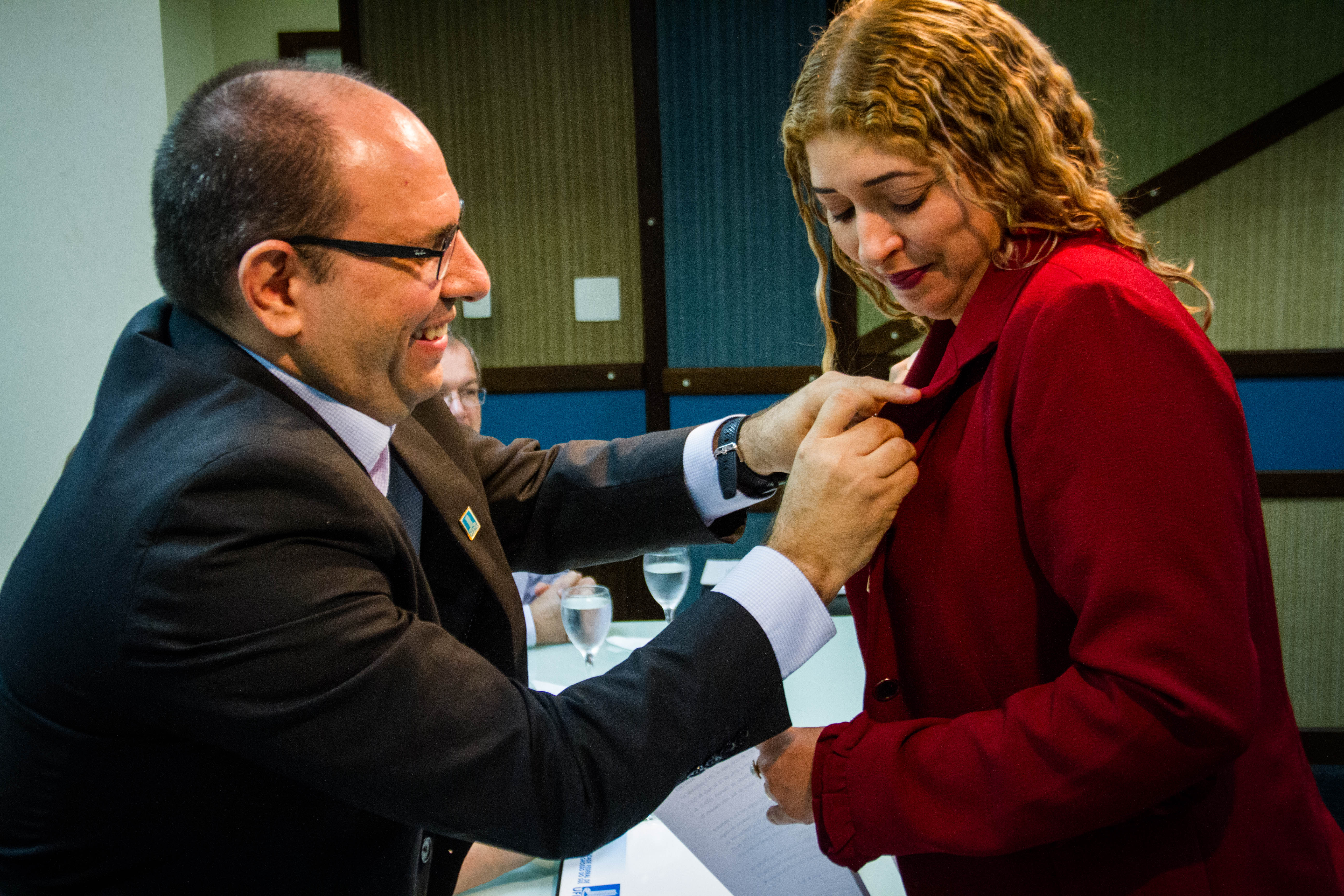 Os Diretores das novas unidades criadas nesta gestão, que já haviam tomado posse no início de junho, também estiveram presente e foram convidados a receber o bóton da UFMS: Vera Lúcia Penzo Fernandes, Diretora da Faculdade de Artes, Letras e Comunicação (FAALC); Vivina Dias Sól Queiróz, Diretora da Faculdade de Ciências Humanas (FACH); Albert Schiaveto de Souza, Diretor do Instituto de Biociência (INBIO); Luciana Contrera, Diretora do Instituto Integrado de Saúde (INISA); Maria Lígia Rodrigues Macedo, Diretora da Faculdade de Ciências Farmacêuticas, Alimentos e Nutrição (FACFAN); e Ordália Alves de Almeida, Diretora da Faculdade de Educação (FAED).
