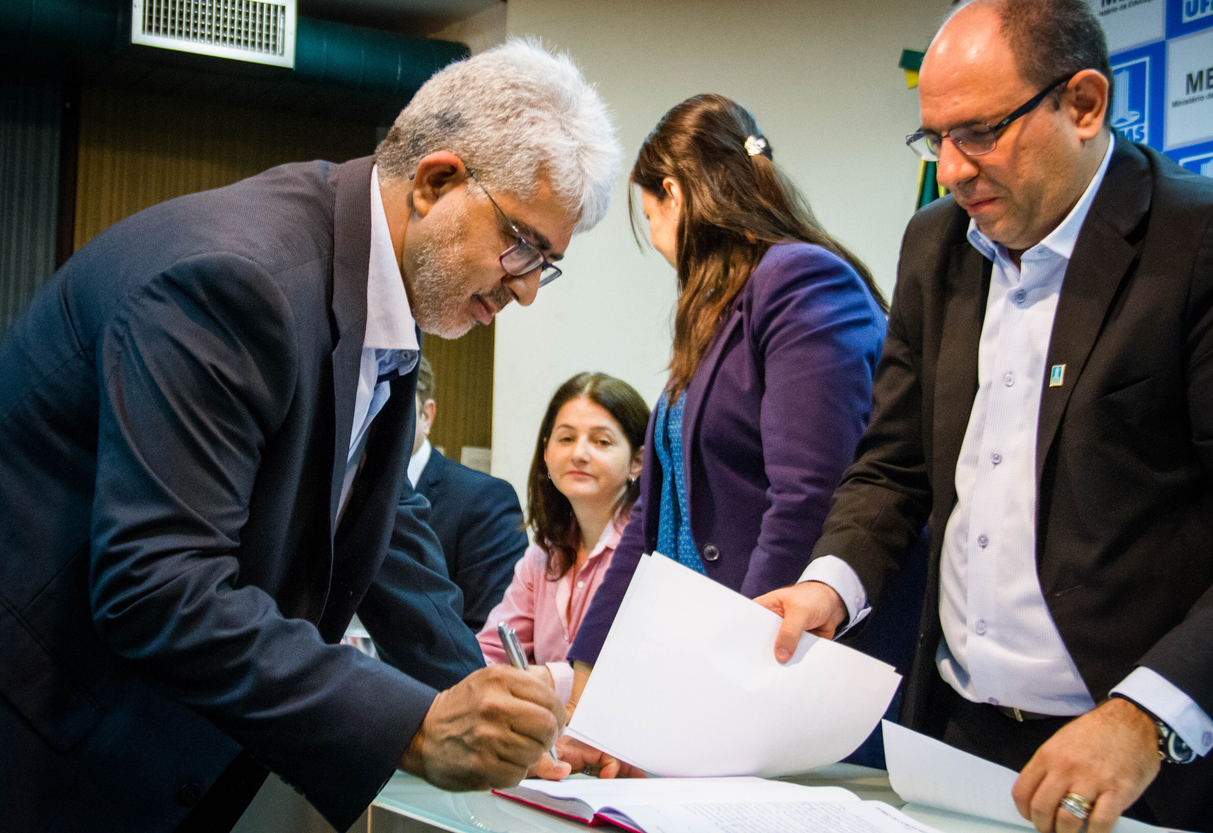 A mesa foi composta pelo Reitor, Marcelo Turine, a Vice-Reitora, Camila Ítavo e os Pró-Reitores: Claudio César da Silva, de Administração e Infraestrutura (PROADI); Nalvo Franco de Almeida Junior, de Pesquisa e Pós-Graduação (PROPP); Ruy Alberto Caetano Corrêa Filho, de Graduação (PROGRAD); Ana Rita Barbieri Filgueiras, de Assuntos Estudantis (PROAES); e Dulce Maria Tristão, de Planejamento, Orçamento e Finanças (PROPLAN). Esteve presente ainda Antônio José Ângelo Motti, o Pró-Reitor de Gestão de Pessoas (PROGEP).