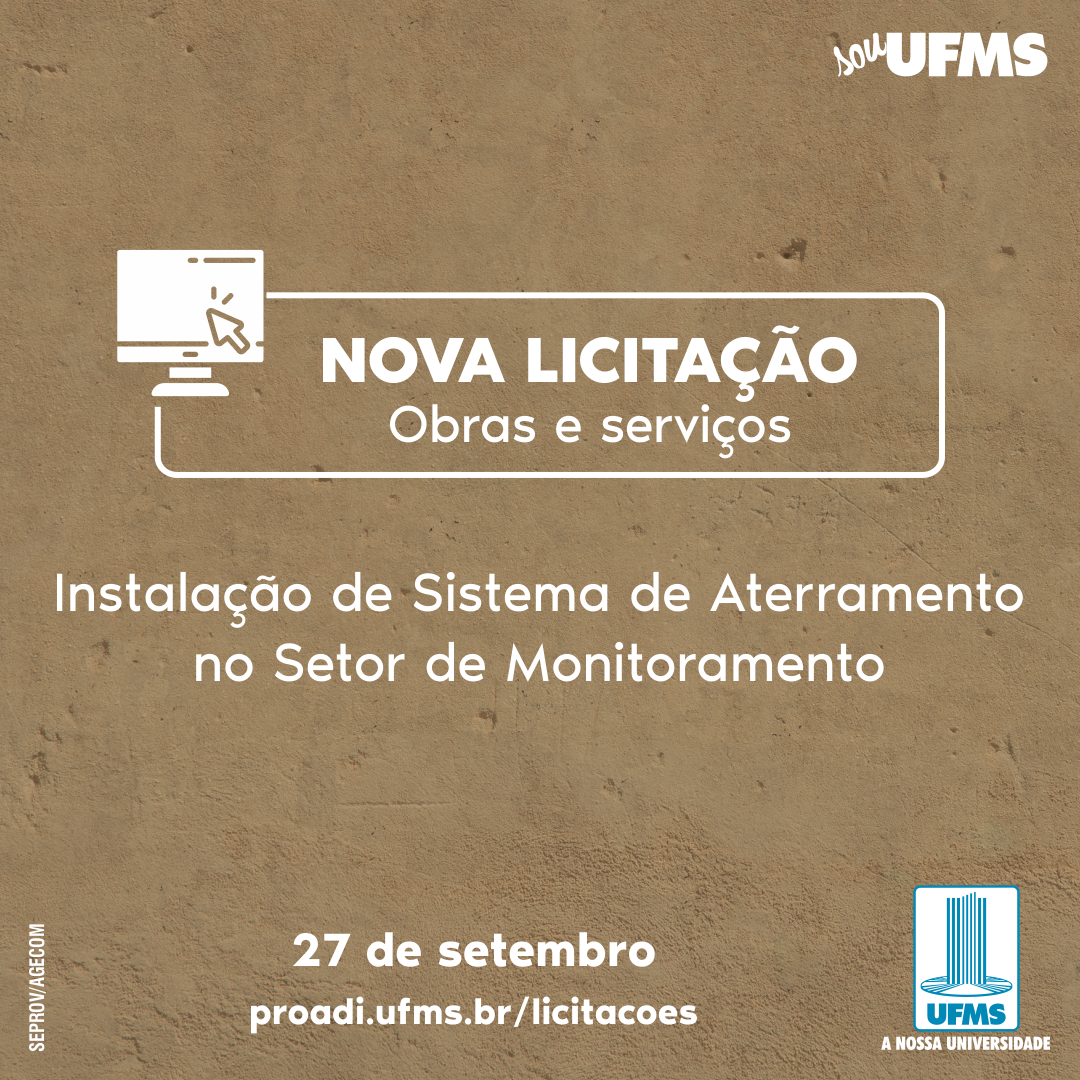 A Universidade realiza, no dia 27, licitação para contratar empresa especializada para executar obras e serviços para instalação de sistema de aterramento no setor de monitoramento, localizado na Cidade Universitária.