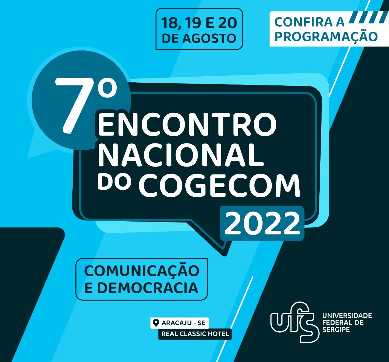 Sob o tema Comunicação e Democracia, o Colégio de Gestores de Comunicação das Universidades Federais (Cogecom) promove seu sétimo encontro nacional, entre os dias 18, 19 e 20 de agosto, na Universidade Federal de Sergipe (UFS), em Aracaju (SE). As palestras e painéis gratuitos irão abordar a comunicação em diferentes âmbitos e os atuais desafios da área nas instituições de ensino superior. O evento pode ser acompanhado on-line pelo canal do Cogecom e da TV UFS.