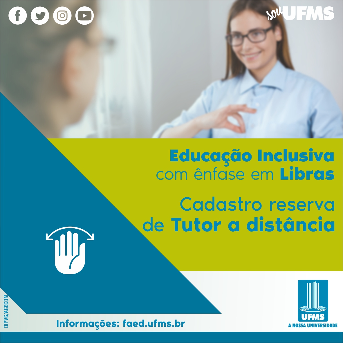 As inscrições para o cadastro reserva de tutor para atuação a distância, da Especialização em Educação Inclusiva com ênfase em Libras, podem ser feitas até amanhã, 30. Os interessados devem acessar este link, no site da Pró-reitoria de Extensão, Cultura e Esporte (Proece).