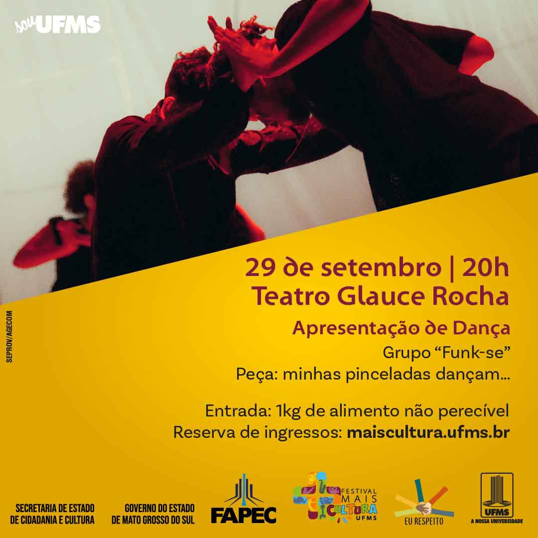 A atração de hoje é o grupo Funk-se, que apresentará ao público o espetáculo Minhas Pinceladas Dançam. Segundo o diretor e coreógrafo da companhia, Edson Clair, a apresentação é uma homenagem ao artista plástico Humberto Espíndola, que completará 80 anos em 2023.