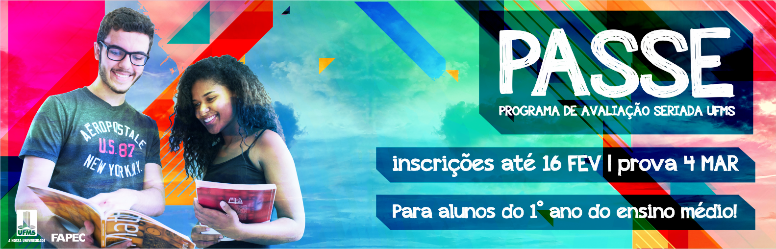 Os candidatos interessados podem acessar abaixo todas as informações do Edital do PASSE, que explica as vagas, conteúdos programáticos, pesos, notas, documentos exigidos e muito mais. Acesse: www.ufms.br/passe e conheça melhor o programa.