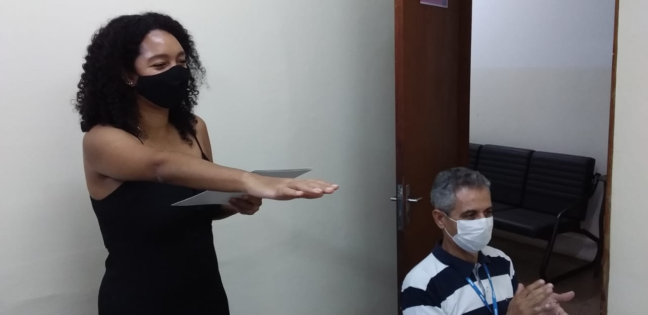 “Eu fico muito feliz de estar junto com vocês para poder vivenciar esse momento com a Ana Paula e com os seus amigos”, disse o reitor Marcelo Turine ao cumprimentar a estudante pela nova conquista. Em sua fala, o reitor também destacou a importância da Instituição em contribuir com a sociedade. “O papel da Universidade é essa missão social, essa missão humana de poder ajudar o nosso povo brasileiro”, completou.
