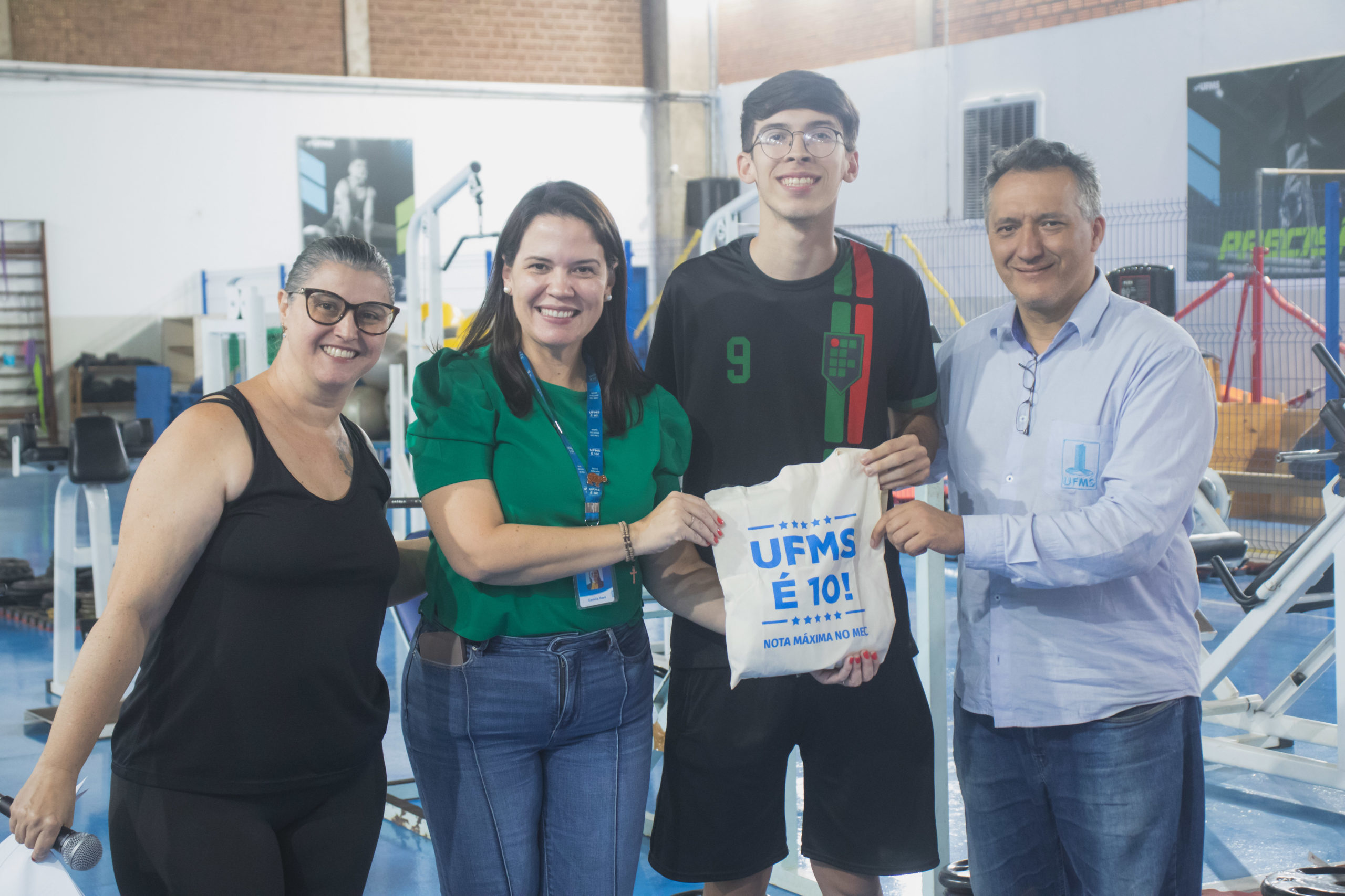 O reitor Marcelo Turine parabenizou os estudantes pelo reconhecimento da UFMS em relação ao esporte. “Parabéns para vocês. Para nós, é um orgulho muito grande ter vocês como nosso time de atletas, que lutam pela imagem da nossa Universidade, pelo esporte da Universidade e do Mato Grosso do Sul. […] Cada vez mais, a gente tem que empolgar os nossos estudantes a participarem do esporte universitário. Isso é uma defesa do esporte universitário, defesa para que vocês nos ajudem a trazer troféus para o Mato Grosso do Sul, porque nós estamos aqui honrando o nosso Estado”, disse.