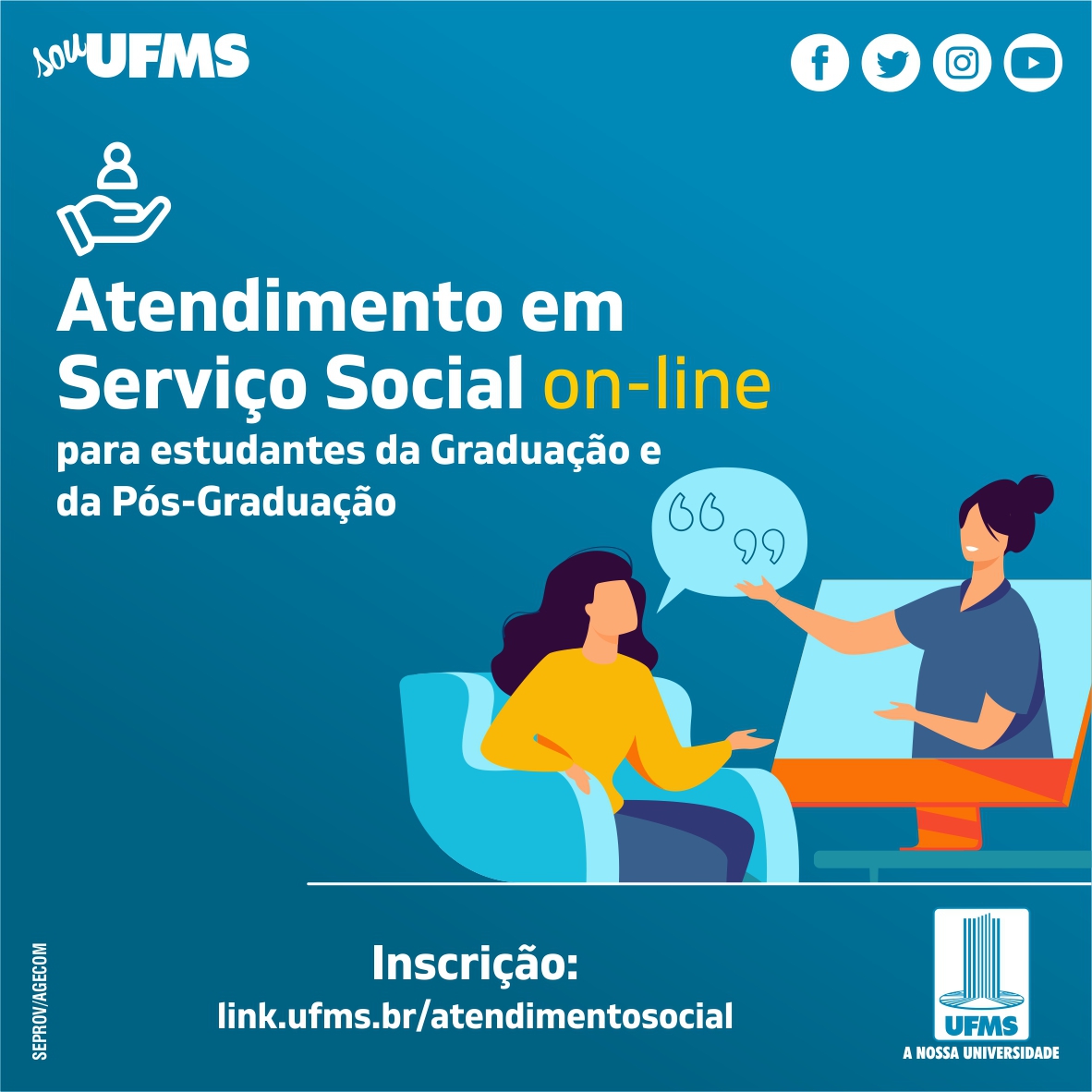 A UFMS, por meio da Pró-reitoria de Assuntos Estudantis (Proaes), realiza atendimento on-line em serviço social, para os estudantes da graduação e pós-graduação de todos os câmpus. “Diante das desigualdades e problemas sociais que vem se reconfigurando no cenário atual devido provocados pela pandemia da Covid-19 e aos isolamentos sociais, o serviço social necessitou ampliar suas possibilidades de atuação visando contribuir para a permanência dos estudantes na UFMS”, destaca o diretor de Assuntos Estudantis da Proaes, professor Edilson José Zafalon .