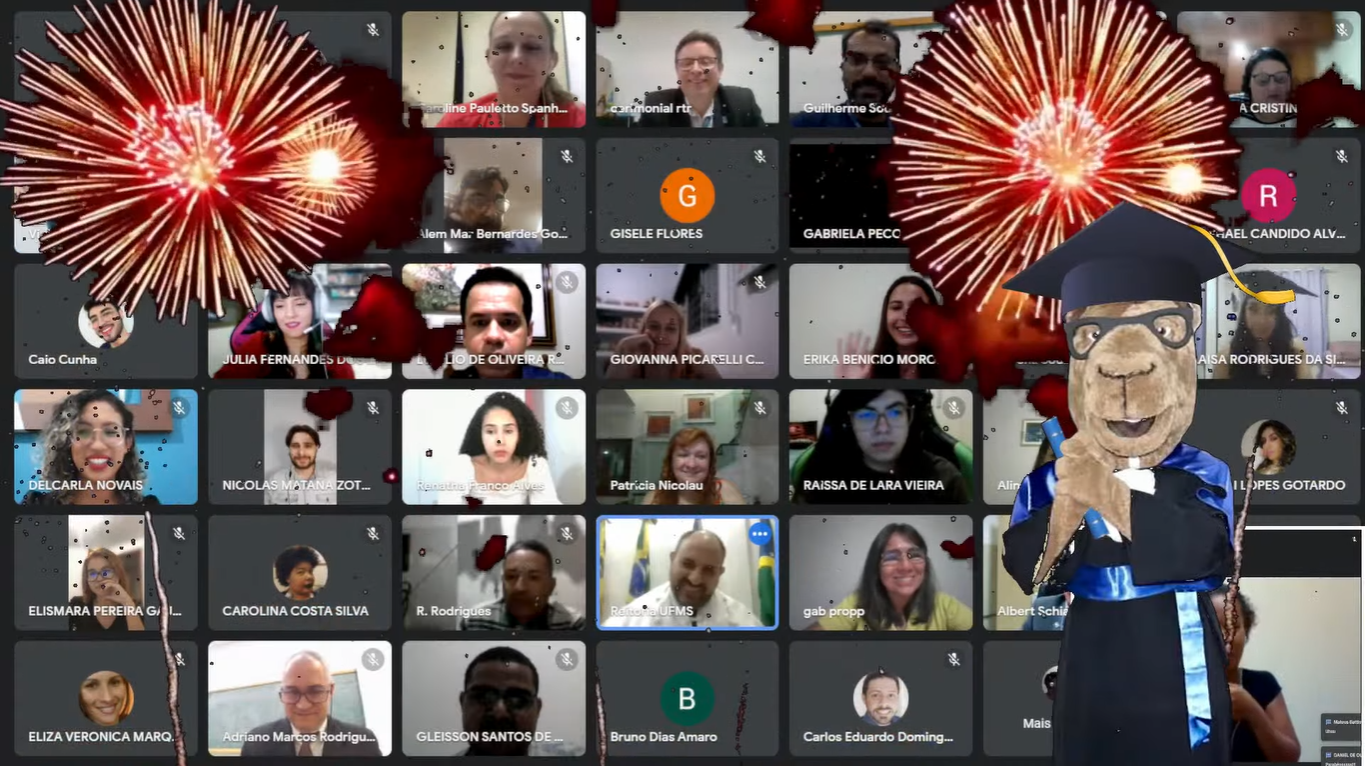 A vice-reitora Camila Ítavo comentou sobre a aprendizagem mútua, na qual tanto os estudantes quanto os professores tiveram que se adaptar às aulas remotas em meio à pandemia. “Cada um sabe o quanto batalhou para chegar até aqui, vocês sabem como foi desafiador, mas que vocês nunca esqueçam da importância de comemorar”.