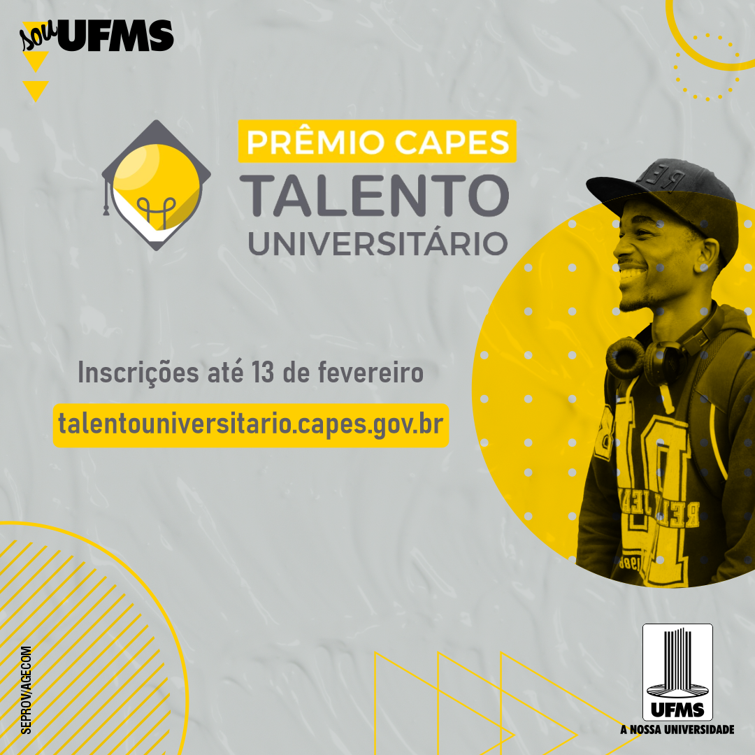 A Coordenação de Aperfeiçoamento de Pessoal de Nível Superior (Capes) está com inscrições abertas para o 2º Prêmio Capes Talento Universitário. Estudantes que tenham ingressado no Ensino Superior em 2021 podem ser inscrever até o dia 13 de fevereiro, acessando a página de inscrições. Este ano, mil estudantes serão premiados com o valor de R$ 5 mil.