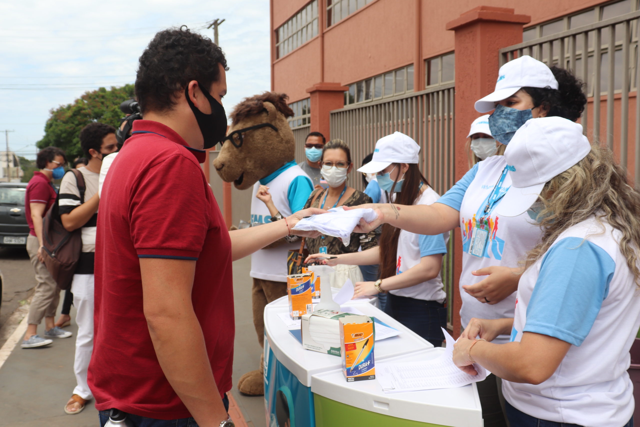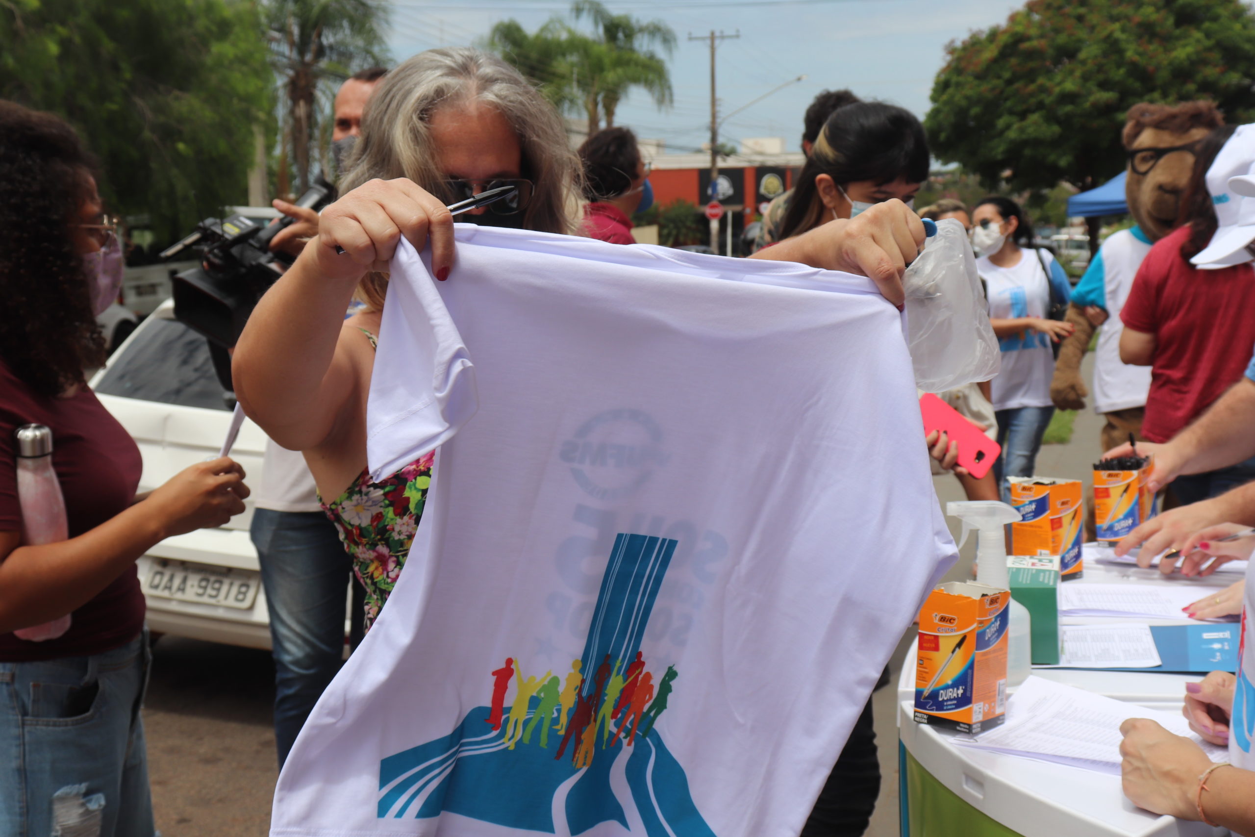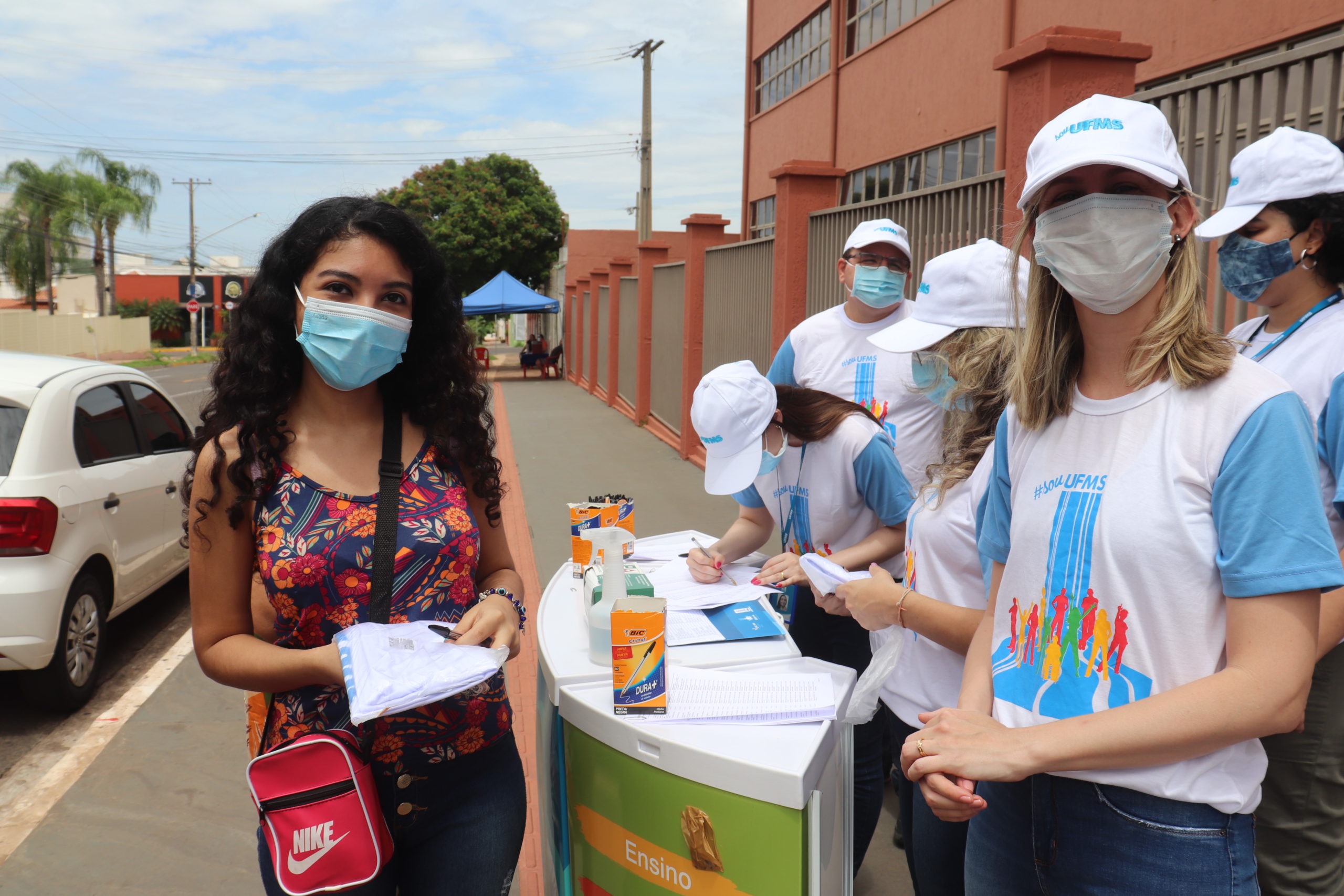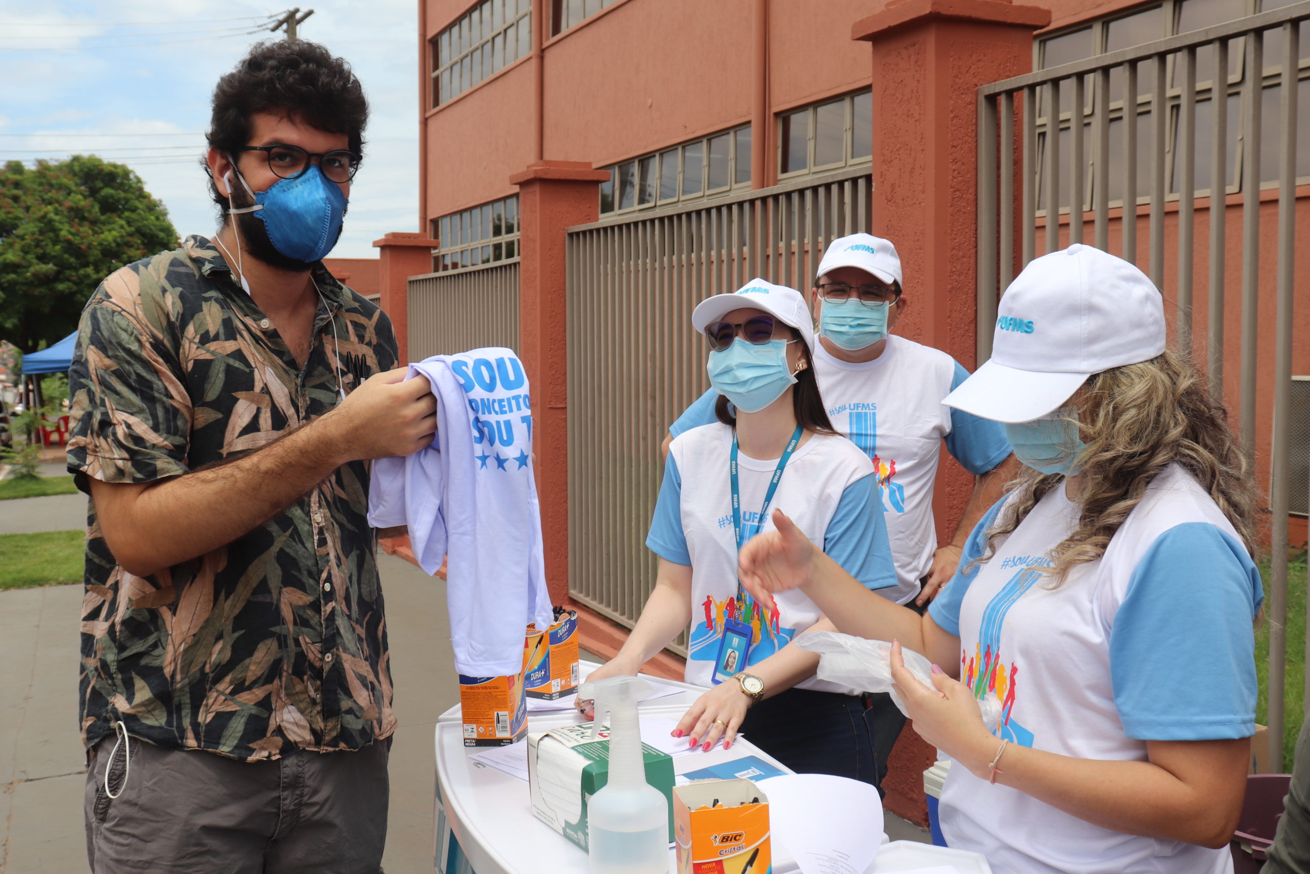 Em alguns dos locais de aplicação do Enade os estudantes da UFMS receberam kits com água, caneta, camiseta, máscara e álcool em gel. A estudante de Música Denise França Benites ficou agradecida por receber a caneta preta exigida para a prova. “Eu estava só com a azul, então foi muito bom ter esse recurso e esse acolhimento. Acho muito importante, para estudantes de todos os cursos, saber que a Universidade se preocupa com a gente”.