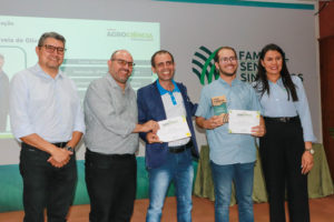 Nessa sexta-feira, 1º, o Sistema Famasul realizou a premiação da 4ª edição do Prêmio AgroCiência. A Universidade foi premiada nas categorias graduação e pós-graduação, com trabalhos dos estudantes da Faculdade de Medicina Veterinária e Zootecnia (Famez) e do Câmpus de Chapadão do Sul (CPCS). O reitor Marcelo Turine participou do evento ao lado do presidente do Sistema Famasul, Marcelo Bertoni, e do diretor-presidente da Fundect, Marcio de Araújo Pereira.