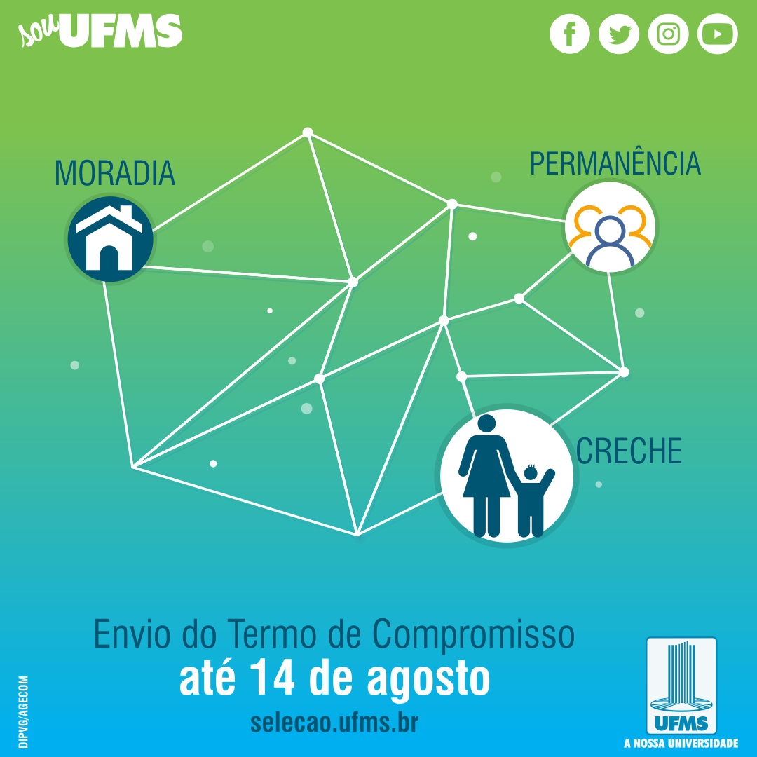 Os selecionados têm até amanhã, 14, para enviarem o Termo de Compromisso por meio do Sistema de Seleção. O formulário pode ser baixado no site da Proaes. Os contemplados serão acompanhados pela Equipe Técnica de Assistência Estudantil e deverão cumprir os compromissos e obrigações conforme Resolução nº 135/2018 do Conselho Universitário (Coun).