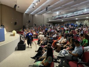 A vice-reitora Camila Ítavo presidiu a cerimônia e enfatizou a importância da concretização de sonhos. “Hoje é um dia que celebramos a conquista de cada um de vocês. Além de celebrarem este dia tão especial, honrem a trajetória de vocês, o caminho que vocês escolheram, e lembrem-se que a luz do outro não me ofusca,  sejam muito felizes, vocês são alma mater da UFMS. Sucesso a todos”.
