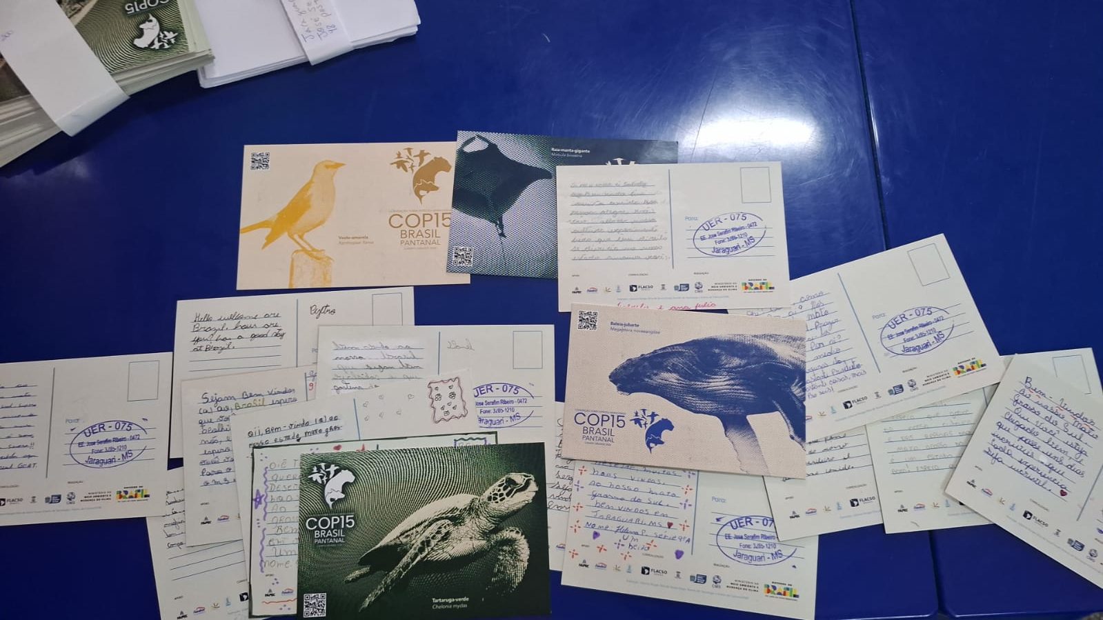 A troca de cartões-postais entre estudantes da educação básica e delegados de 130 países é uma das iniciativas da UFMS na COP15 – 15ª Conferência das Partes sobre Espécies Migratórias. A ação une comunicação, afeto e conscientização ambiental ao propor uma conexão direta entre crianças, jovens e participantes da conferência, por meio de mensagens escritas à mão que atravessam gerações e culturas.