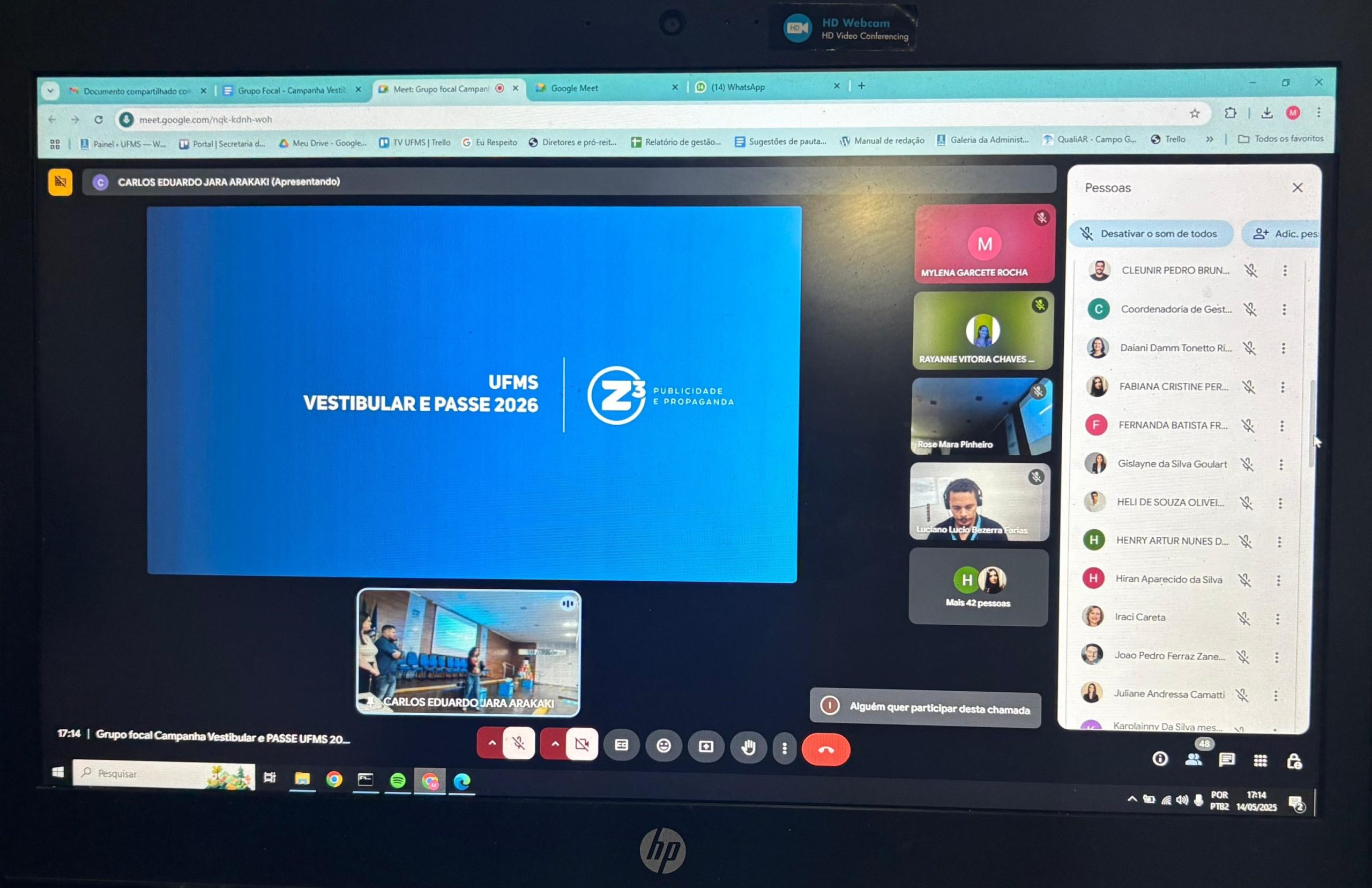 Nesta quarta-feira, 14, a Agência de Comunicação Social e Científica (Agecom) realizou um grupo focal com estudantes e servidores para apresentação da proposta da campanha do Vestibular e PASSE UFMS 2026. A iniciativa faz parte do programa UFMS em Ação para que a nova campanha seja idealizada com a participação de todos no processo de construção das peças publicitárias desenvolvidas pela agência Z3 Publicidade e Propaganda.