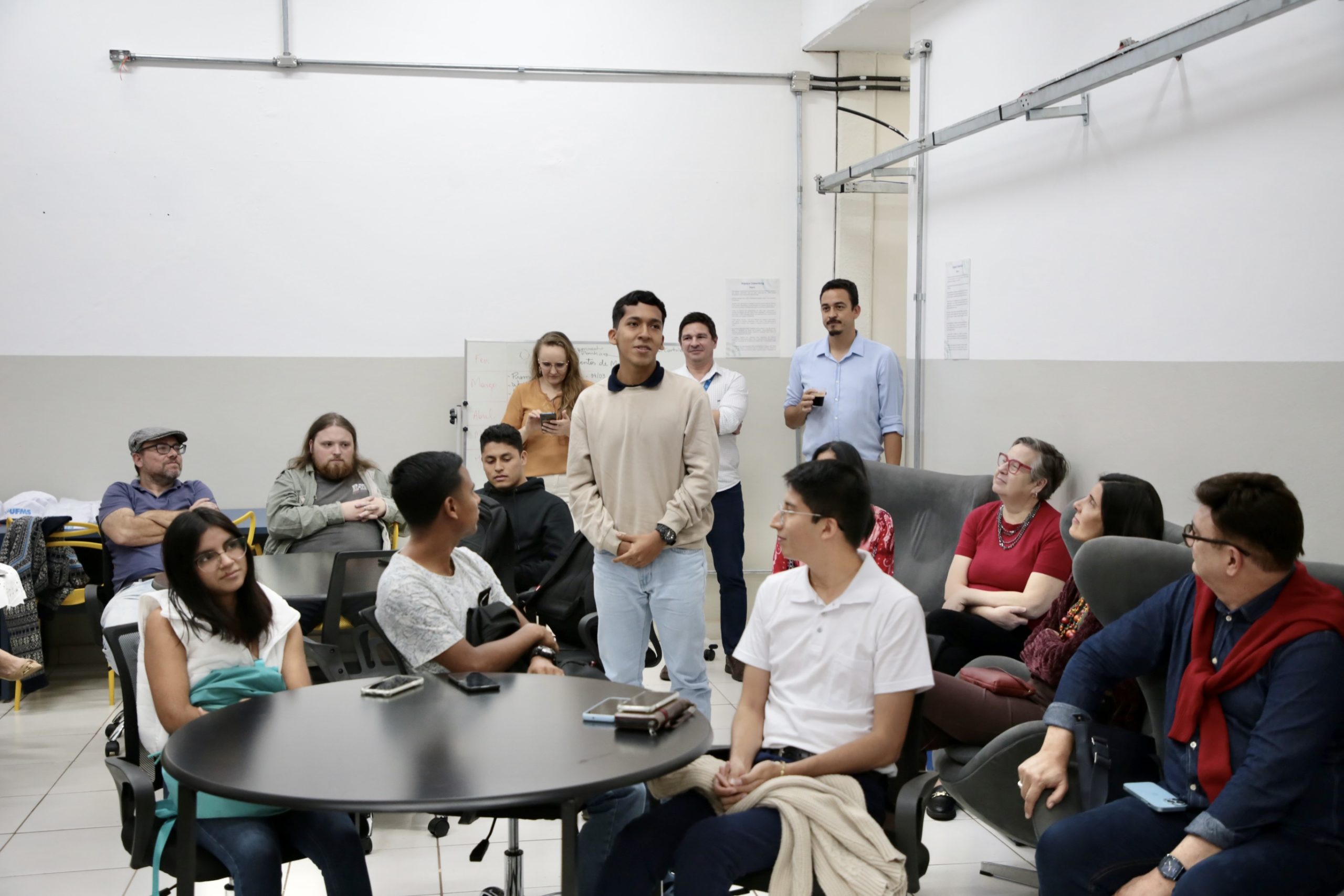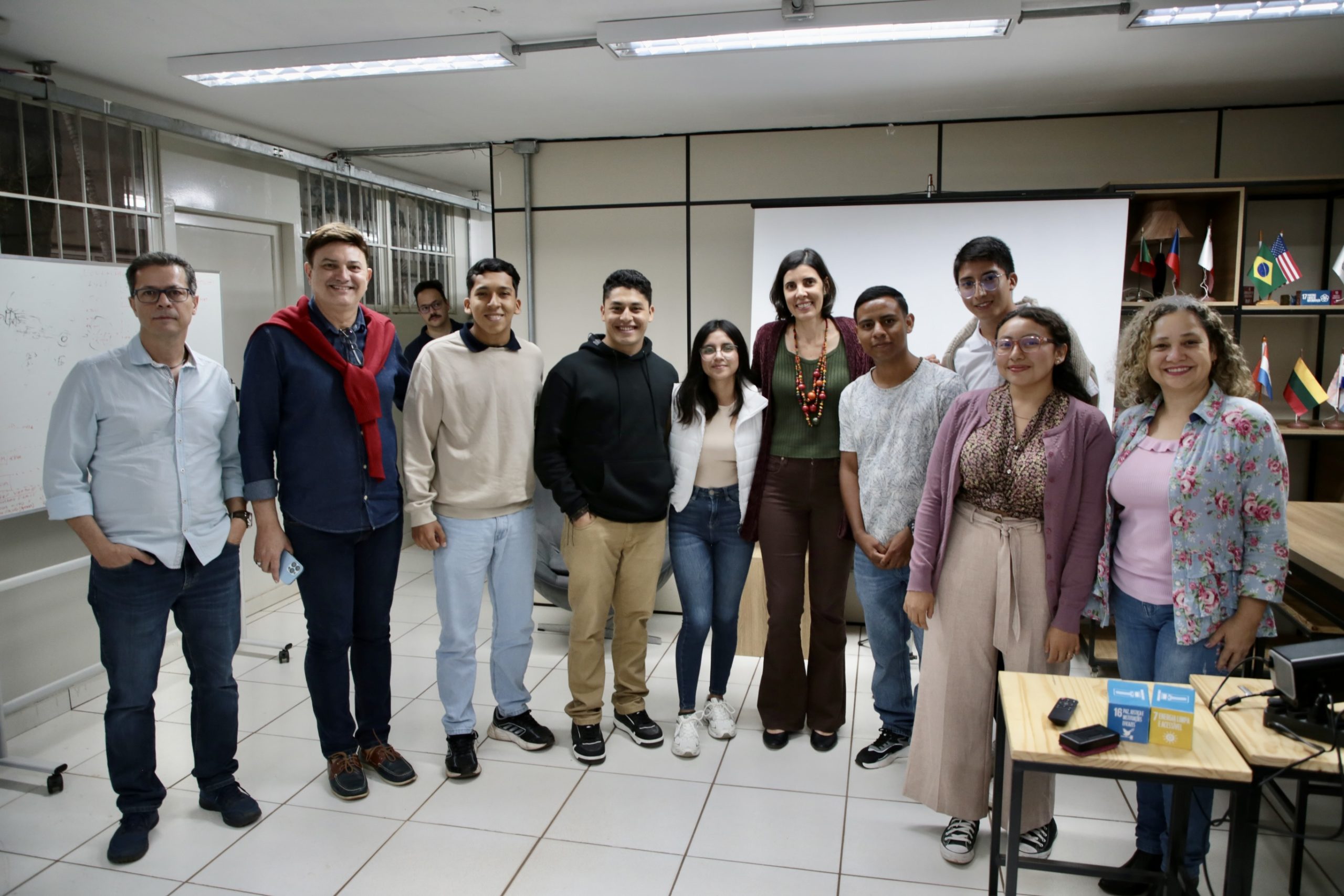 Sete estudantes estrangeiros do México, Colômbia, Peru e Estados Unidos foram recepcionados nesta quinta-feira, 8, pela Secretaria de Relações Internacionais da Agência de Internacionalização e Inovação (Aginova). Eles irão cursar o segundo semestre deste ano nos cursos de graduação em Administração e Turismo, da Escola de Administração e Negócios; Ciências Biológicas, do Instituto de Biociências; Ciências Sociais, da Faculdade de Ciências Humanas (Fach); Engenharia de Alimentos, da Faculdade de Ciências Farmacêuticas, Alimentos e Nutrição; e Jornalismo, da Faculdade de Artes, Letras e Comunicação. O evento foi realizado no espaço da Pantanal Incubadora Mista de Empresas, na Cidade Universitária.
