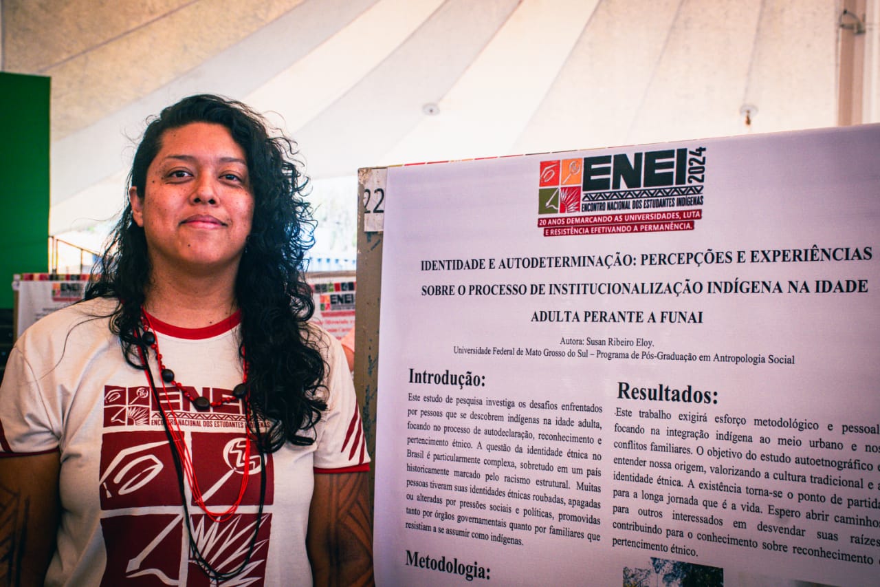 O tema apresentado por Susan foi Identidade e autodeterminação: percepções e experiências sobre o processo de institucionalização indígena na idade adulta perante a Fundação Nacional dos Povos Indígenas, trabalho orientado pelo professor da Faculdade de Ciências Humanas Antônio Hilário Aguilera Urquiza, no qual a estudante fala um pouco sobre sua retomada identitária enquanto indígena em contexto urbano.