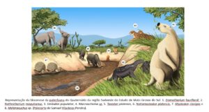 Os pesquisadores iniciam o relato sobre o estudo explicando o que é “megafauna”. O termo é associado a animais pré-históricos que viveram durante o Pleistoceno, época geológica do período Quaternário estabelecida entre 2 milhões e 12 mil anos atrás. Marcada por glaciações, esta época ficou conhecida como “Era do Gelo” e é anterior à época atual, chamada Holoceno. “Quando falamos de megafauna quaternária falamos dos grandes mamíferos que viveram naquele período. Os animais caracteristicamente mais emblemáticos são os com mais de uma tonelada de peso, que são o toxodon, o mastodonte e a preguiça gigante, mas existem também os de porte menor, que podem ter acima de 40 quilos, que são a Palaeolama major e o tigre dentes-de-sabre, entre outros”, aponta Fábio.