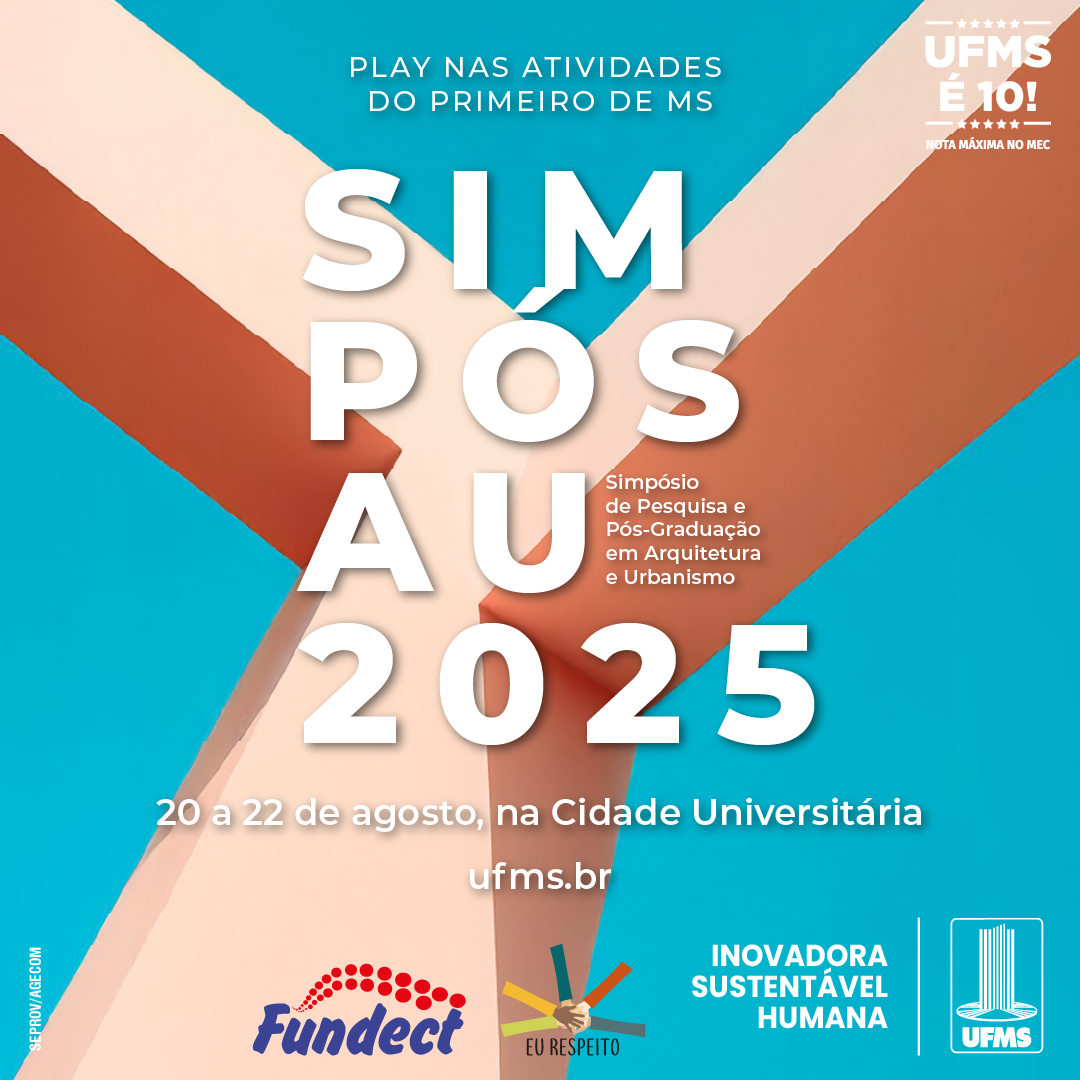 Na próxima semana, entre os dias 20 e 22 de agosto, será realizada a primeira edição do Simpósio de Pesquisa e Pós-Graduação em Arquitetura e Urbanismo, na Cidade Universitária. Estudantes, professores, pesquisadores e profissionais da área podem se inscrever aqui, de forma gratuita até o dia 19. A programação celebra o início das atividades do Mestrado em Arquitetura e Urbanismo da UFMS, o primeiro de Mato Grosso do Sul.