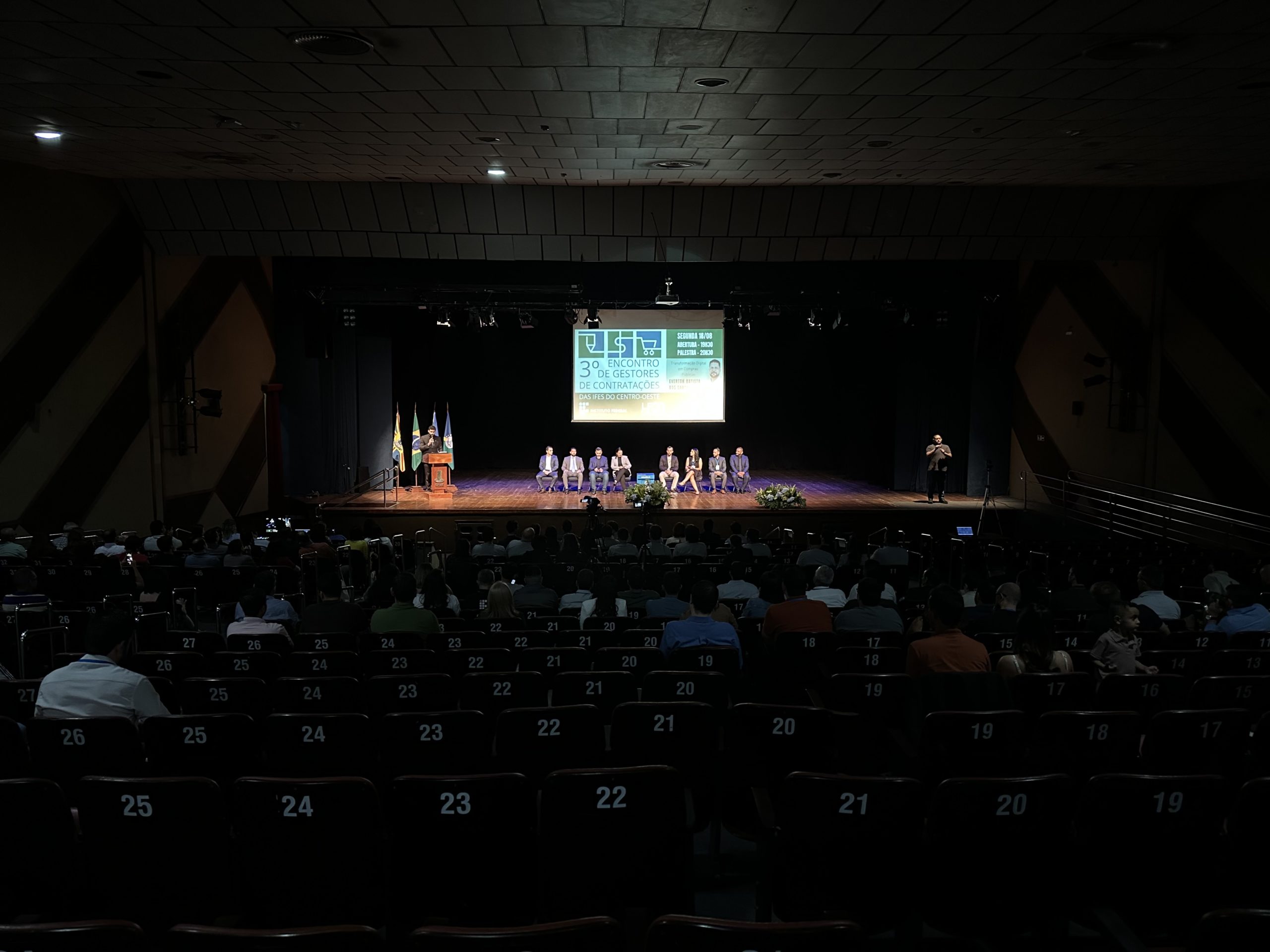 A reitora Camila Ítavo prestigiou a abertura do evento, realizada no Teatro Glauce Rocha, e agradeceu ao trabalho feito pelos profissionais presentes. “É um desafio hercúleo poder pensar nas compras, contratações, em como chegar o material, fazer toda uma logística. […] Mas a nossa grande força reside nas pessoas, temos um grande lócus de trabalho de excelência e precisamos cada vez mais trocar boas práticas enquanto rede, por isso a importância de eventos como esse que permitem o compartilhamento de práticas”.