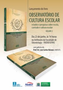 No dia 23 de junho, a partir das 14h, será realizado no Anfiteatro da Faculdade de Odontologia (FAODO) o lançamento do livro Observatório de Cultura Escolar – pesquisas sobre escola, currículo e cultura escolar (Volume 2). A obra foi organizada pelos professores Fabiany de Cássia Tavares Silva (FAED/UFMS) e Manoel Câmara Rasslan (FAALC/UFMS) e foi publicada pela Editora da UFMS, com recursos do Edital FUNDECT/SECTEI 26/2015 – Publica MS.