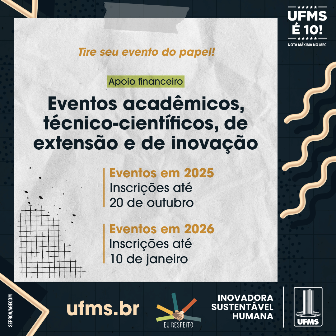 O diretor de Extensão da Pró-Reitoria de Extensão, Cultura e Esporte, Filipe Quevedo, comenta que a iniciativa estimula a realização de eventos, fortalece a integração entre ensino, pesquisa e extensão, aproxima a UFMS da sociedade e complementa a formação de estudantes. “A participação de estudantes de graduação nas equipes amplia a formação prática, e todas as propostas precisam estar vinculadas a uma área do CNPq e a pelo menos um Objetivo de Desenvolvimento Sustentável, o que assegura alinhamento à qualidade acadêmica e a pautas globais. Eventos técnico-científicos podem gerar anais ou livros, fortalecendo a divulgação científica. O edital também estimula parcerias com órgãos públicos, entidades científicas e movimentos sociais”, ressalta.
