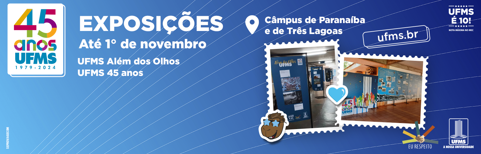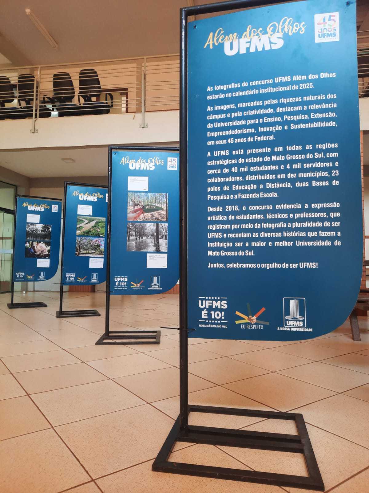 As exposições UFMS 45 anos e UFMS Além dos Olhos chegaram aos Câmpus de Paranaíba (CPar) e Três Lagoas (CPTL). A comunidade universitária tem a oportunidade de conhecer, vivenciar a história e as conquistas da Universidade ao longo de quatro décadas e meia e conferir as fotos vencedoras do concurso fotográfico que vão compor o calendário institucional de 2025.