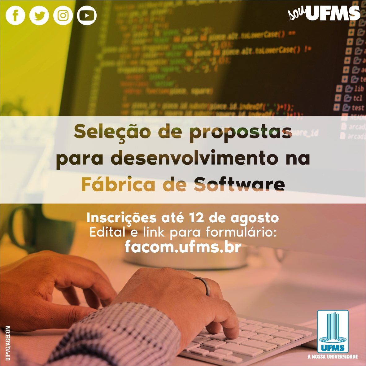 Pessoas de toda a comunidade que tenham ideias de software podem enviar propostas para o seu desenvolvimento gratuito na UFMS. A atividade é realizada na Fábrica de Software da Faculdade de Computação (Facom) por estudantes de Engenharia de Software orientados por professores. As inscrições devem ser feitas somente por pessoas físicas até 12 de agosto, por meio deste formulário virtual.