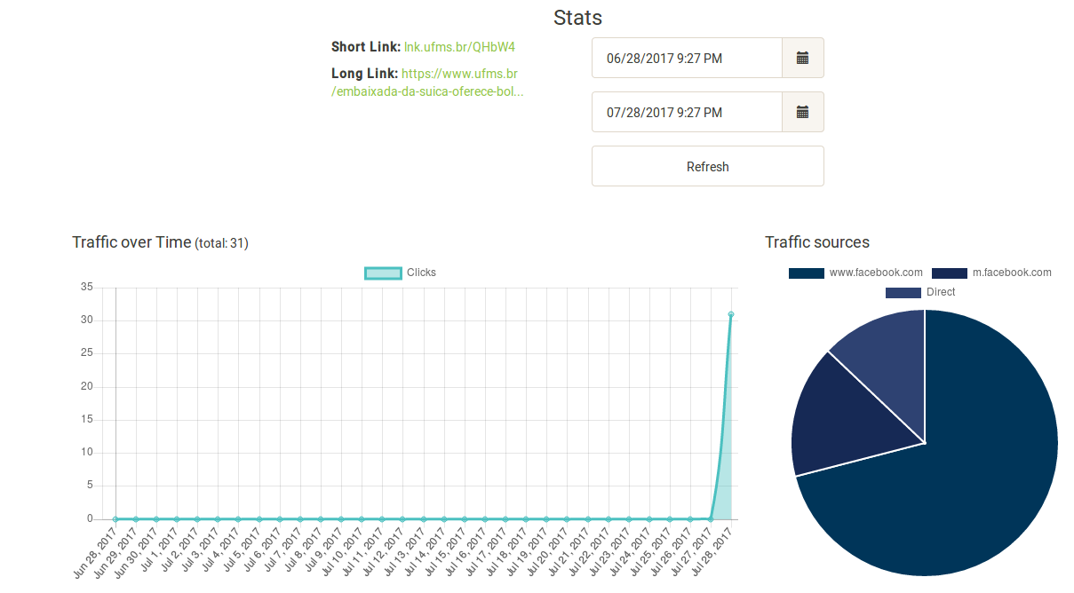 A equipe de infraestrutura da Faculdade de Computação (FACOM) da Universidade Federal de Mato Grosso do Sul disponibiliza à comunidade acadêmica e ao público externo um serviço de encurtador de URLs (links) com o domínio da própria UFMS. O serviço foi implementado há cerca de seis meses.