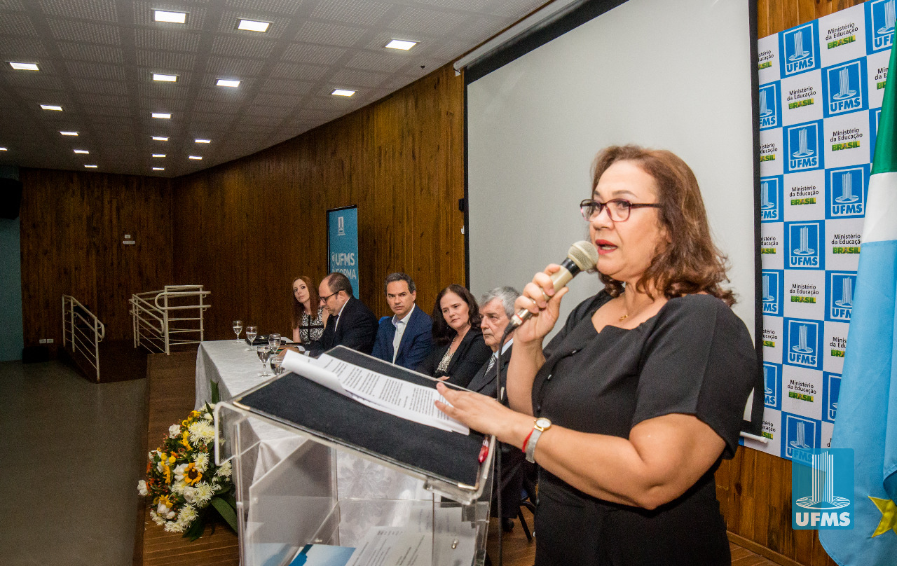 “É uma experiência maravilhosa. Escolhi ser professora, estar na Fadir e ser UFMS. Ocupar um cargo de direção é transitório, mas é importante na faculdade, pois funciona como uma espécie de porta-voz dos estudantes, professores e técnicos. Fico feliz em poder comemorar essa data com todos. A Faculdade foi um sonho acalentado por um grupo pequeno na época, mas que se organizou e conseguir realizar esse sonho. A Fadir se estruturou dentro da UFMS e se aproximou da sua finalidade do ensino. Mas na pesquisa também crescemos e hoje temos o único mestrado em Direito do Estado além de mantermos um doutorado interinstitucional com a Universidade de São Paulo. Claro, tivemos muitas dificuldades, mas elas servirão como aprendizado”, comentou a diretora Ynes da Silva Félix, durante a cerimônia de comemoração dos dez anos da Faculdade de Direito (Fadir), realizada na noite de 30 de outubro, no auditório do Complexo Multiuso.