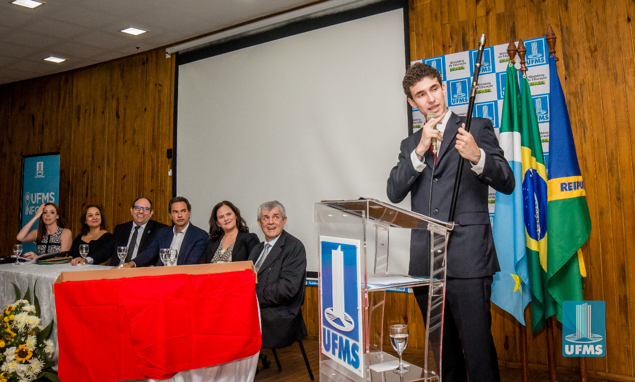 A solenidade contou com a presença do reitor Marcelo Turine. “É muito bom comemorar, parabenizo toda a direção da Faculdade e também aos professores e estudantes. A Faculdade é uma das 25 unidades da nossa Instituição e tem ajudado muito a cumprirmos a nossa missão maior que é a formação de recursos humanos qualificados para o estado e para o país”, destacou Turine. “Aproveito para agradecer a direção e corpo de servidores pela governança e diálogo institucional que permitem que a graduação e a pós-graduação sejam destaque e tenham força no cenário jurídico sul-mato-grossense”, falou.