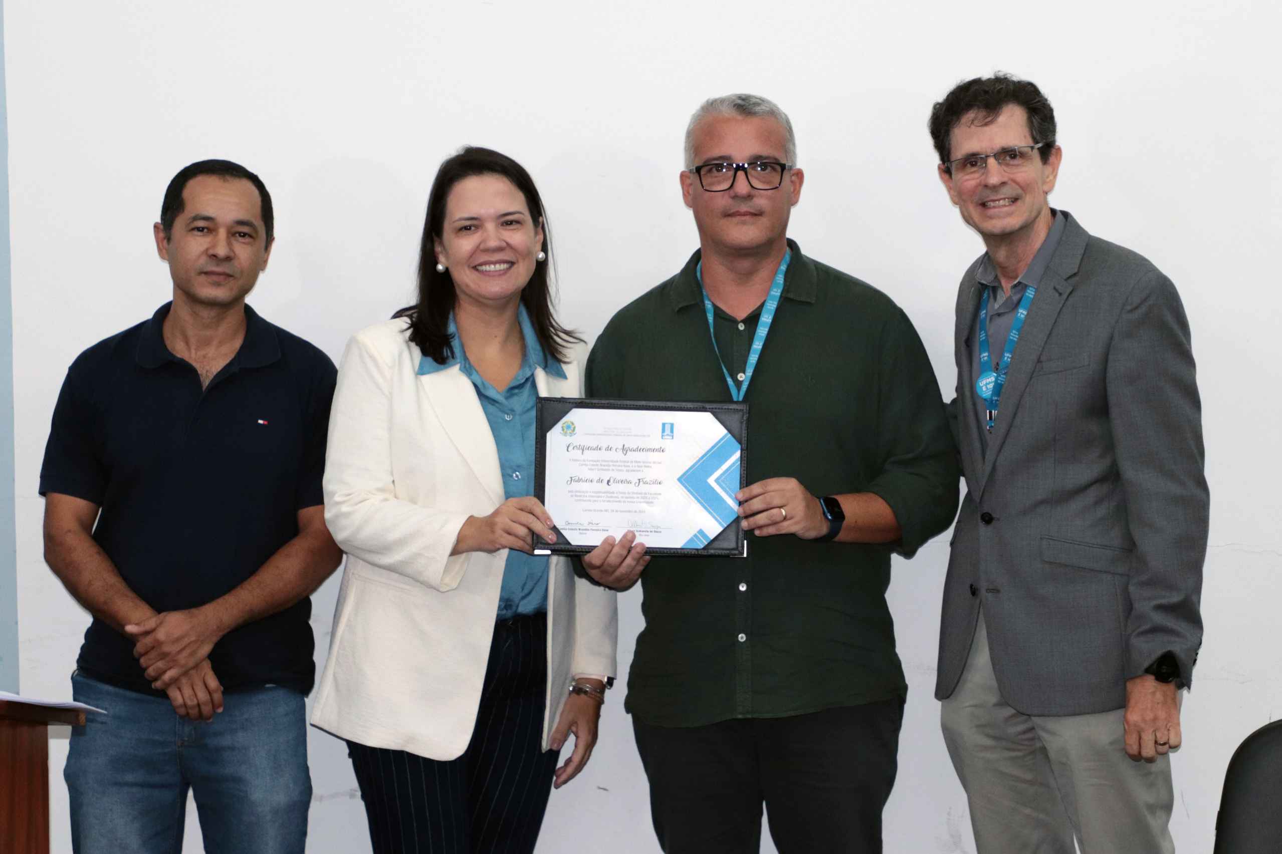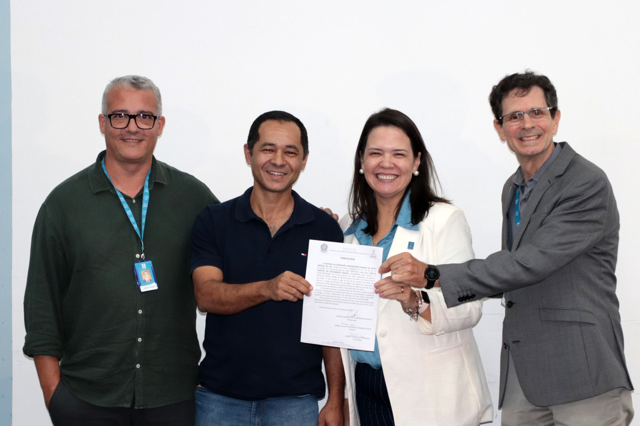 Durante a cerimônia, a reitora e o vice-reitor homenagearam o professor Fabrício pelos anos de contribuição na direção da Famez. “Esse é um momento que estava aguardando para agradecer a todos que estiveram comigo nesses oito anos à frente da direção da Faculdade, especialmente ao professor Carlos que esteve comigo na Coac durante todo esse tempo. Agradeço aos professores, aos técnicos, aos alunos. Aprendi muito e agora estou com um novo desafio na Propp. Estamos à disposição de todos para o que precisarem. Parabéns professor Carlos, sabemos dos novos desafios que virão, contem comigo”, finalizou Fabrício.
