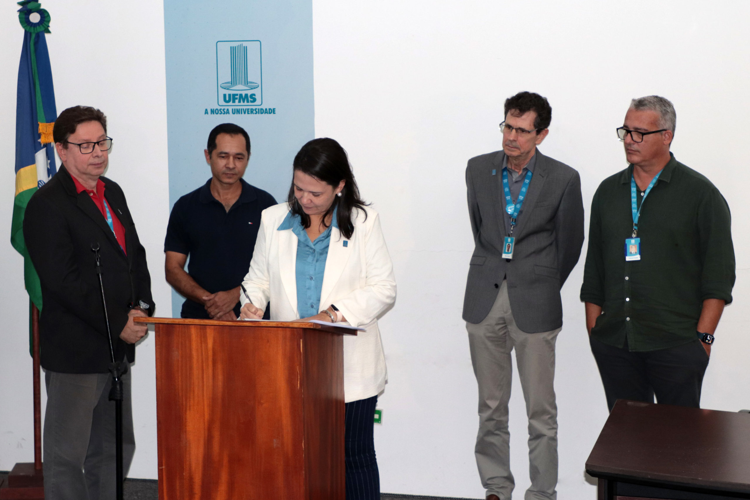 Nesta segunda-feira, 4, a reitora Camila Ítavo empossou o professor Carlos Alberto do Nascimento Ramos como diretor da Faculdade de Medicina Veterinária e Zootecnia (Famez). A cerimônia foi realizada no auditório da unidade e teve a participação de pró-reitores, diretores de agências, professores e estudantes.