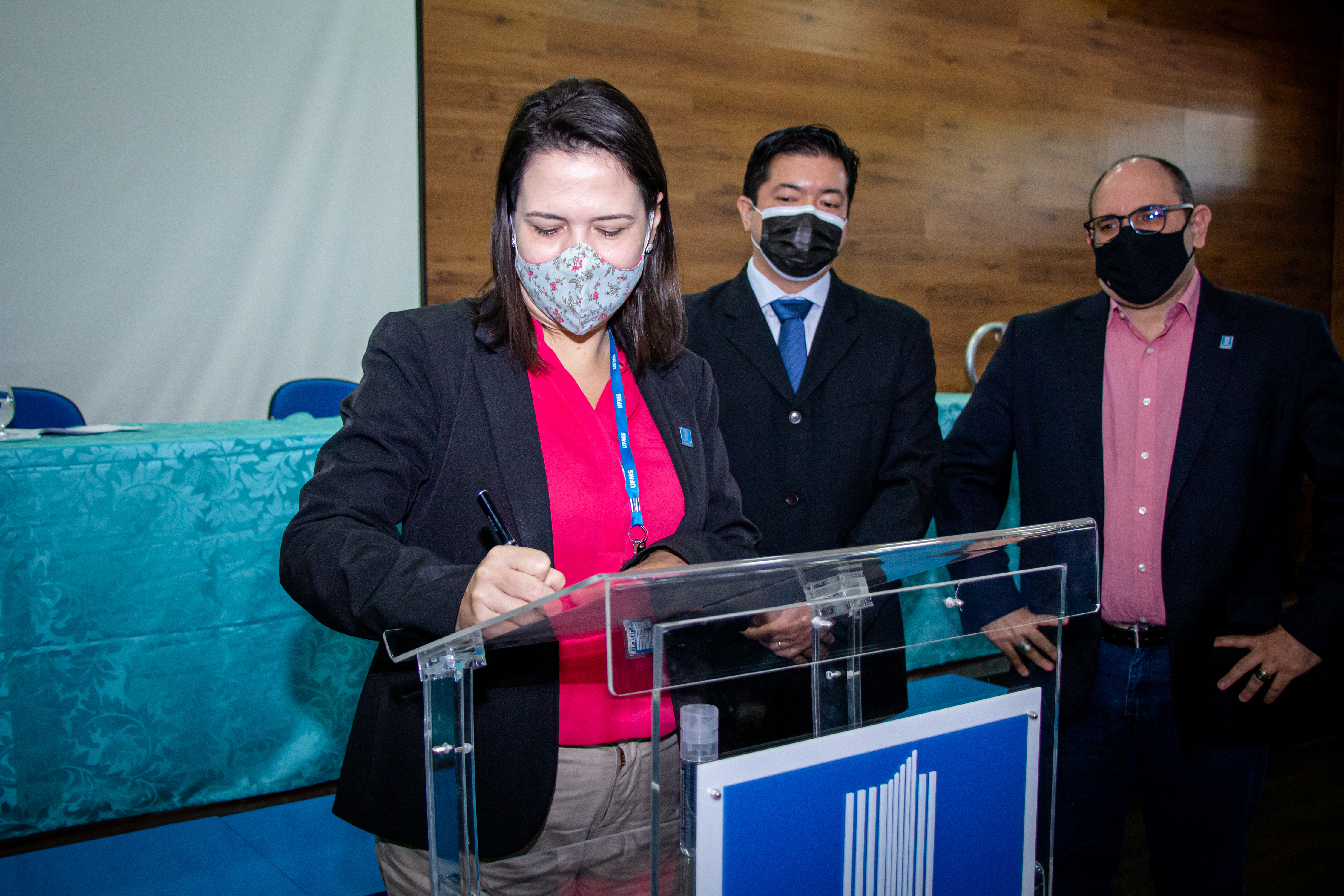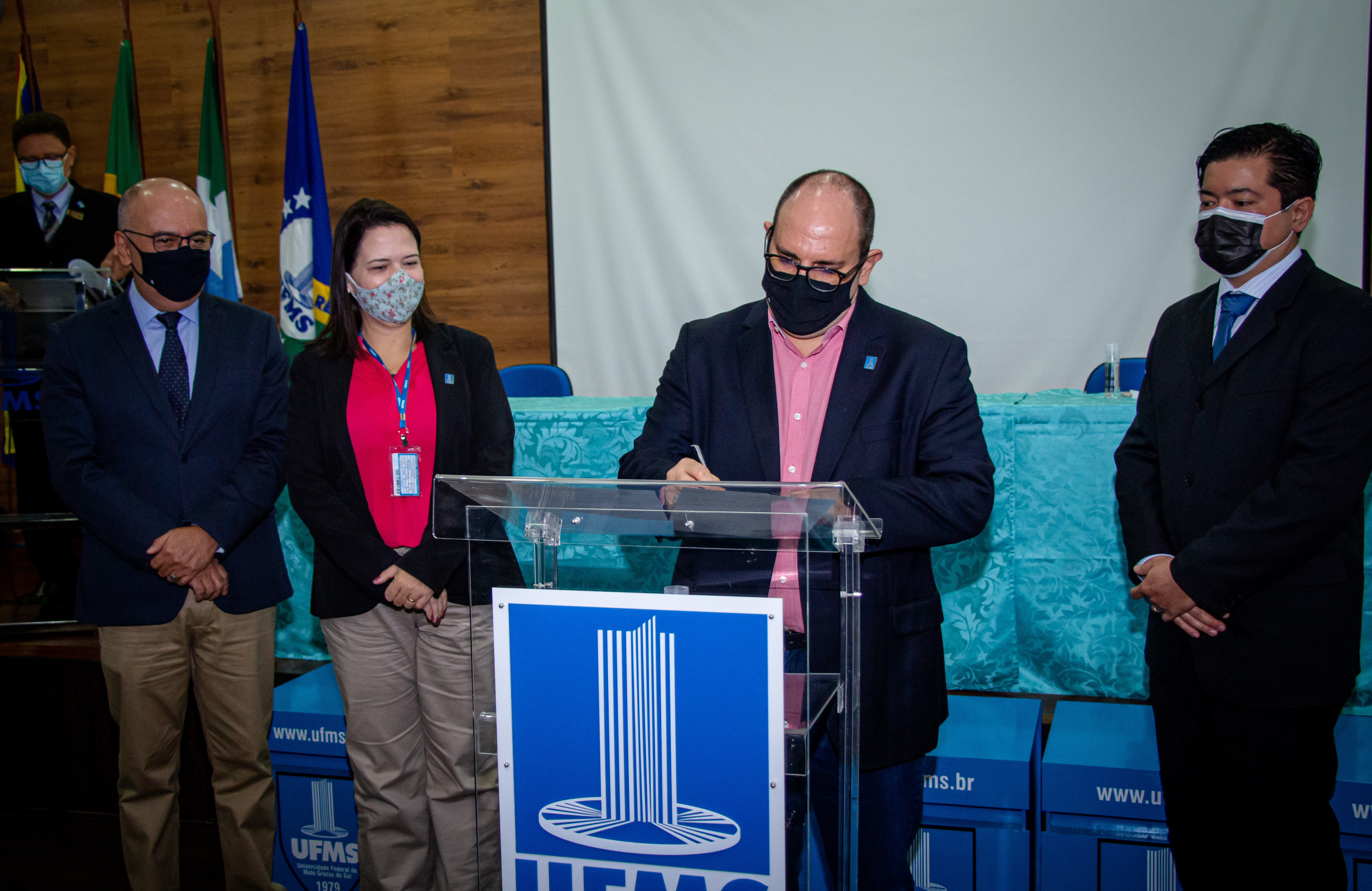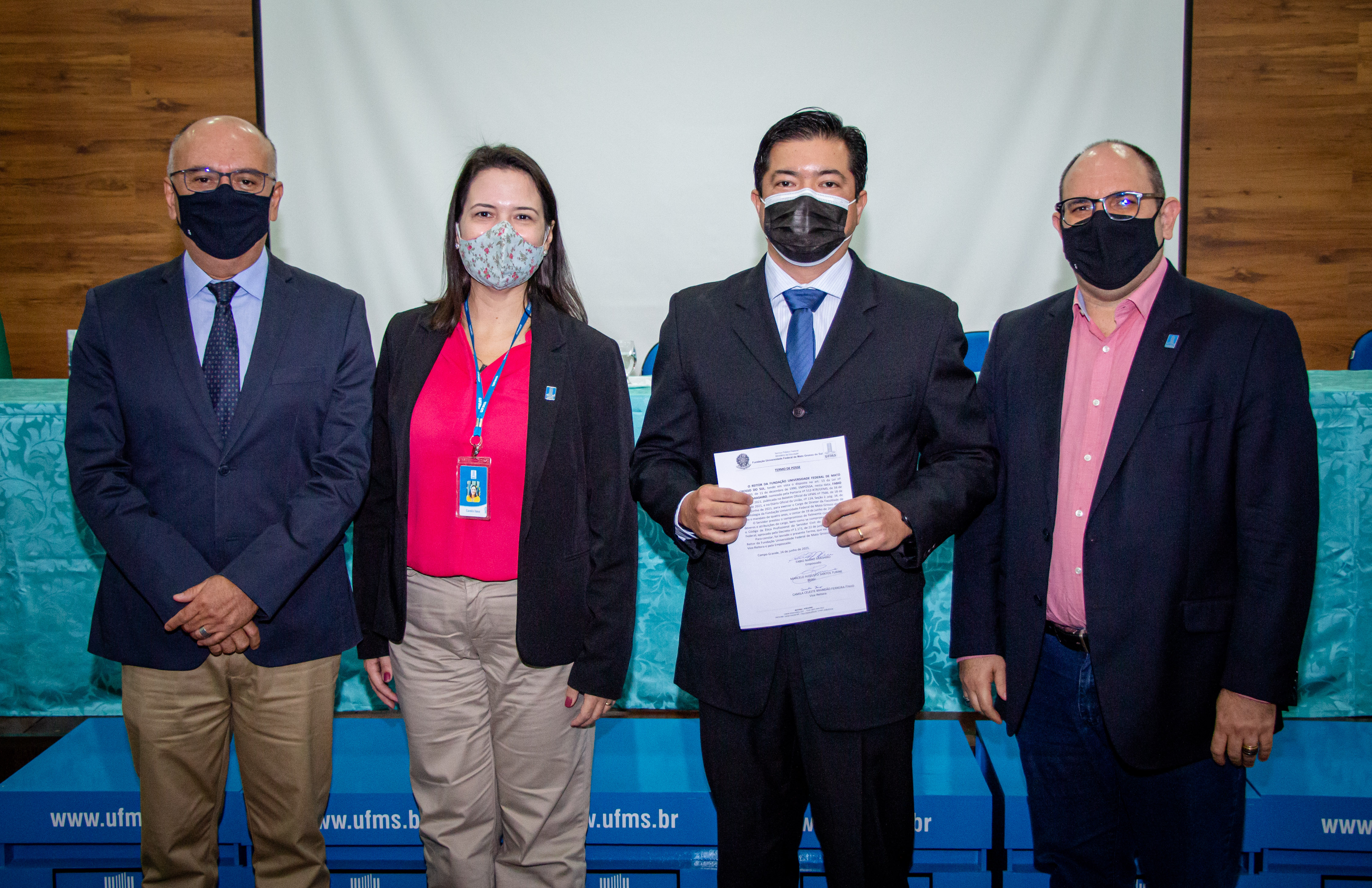 O reitor Marcelo Turine e a vice-reitora Camila Ítavo deram posse ao novo diretor da Faculdade de Odontologia (Faodo) na Cidade Universitária: o professor Fábio Nakao Arashiro. “É importante sempre celebrar um novo início de mandato, com vários sonhos e desafios. Parabenizo o professor Paulo Zárate que encerra o momento de oito anos e cumprimentar o seu sucessor, o professor Fábio que é egresso da graduação e da pós-graduação da UFMS. Que ele possa nos ajudar cada vez mais a potencializar a área de Odontologia na Universidade e que faça uma gestão compartilhada e com qualidade, principalmente neste momento difícil da pandemia”, diz o reitor.