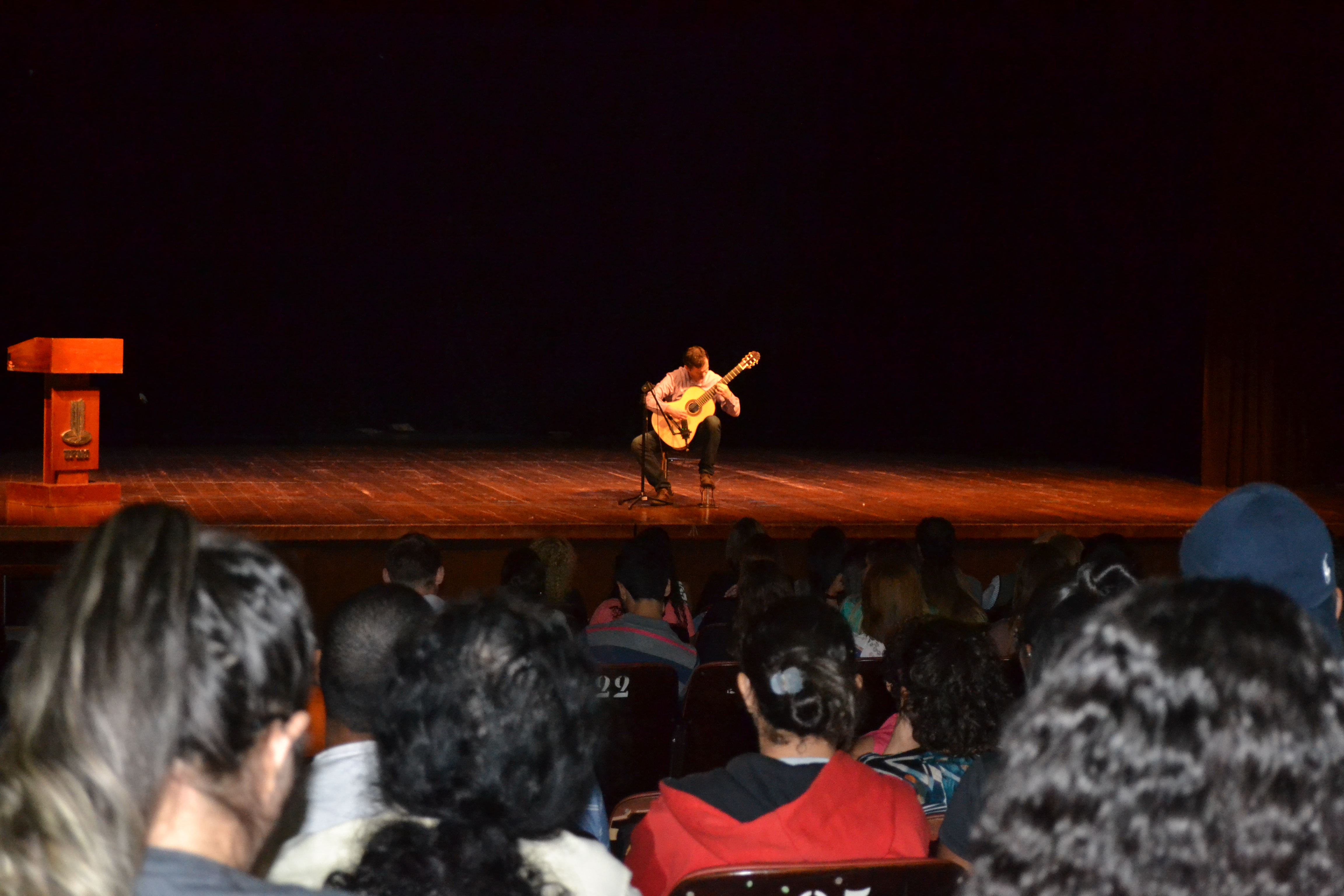 Os professores se apresentaram, deram as boas-vindas aos acadêmicos, e, em seguida, deram espaço às apresentações de dança, do Grupo Bailah, e de Música, com o professor Pieter Rahmeier.