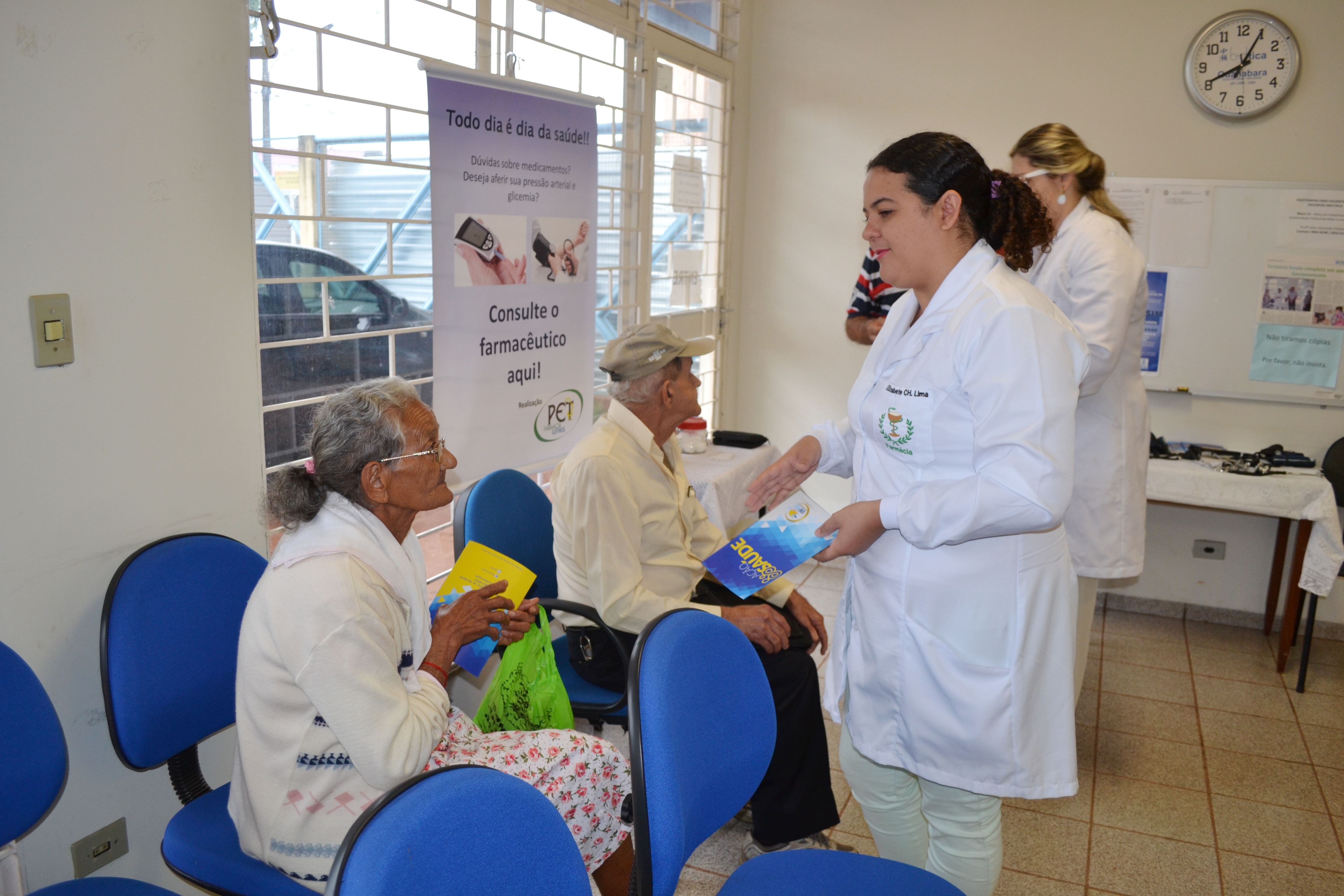 Na ação celebrativa deste Dia Nacional do Uso Racional de Medicamentos, além de Elizabete, outros três acadêmicos do PET fizeram atendimentos pela manhã. Na parte da tarde haverá na Farmácia Escola uma aula prática com os acadêmicos da graduação, mas o atendimento permanecerá normal, com a entrega de folderes, informações e serviços da ação dentro das possibilidades.