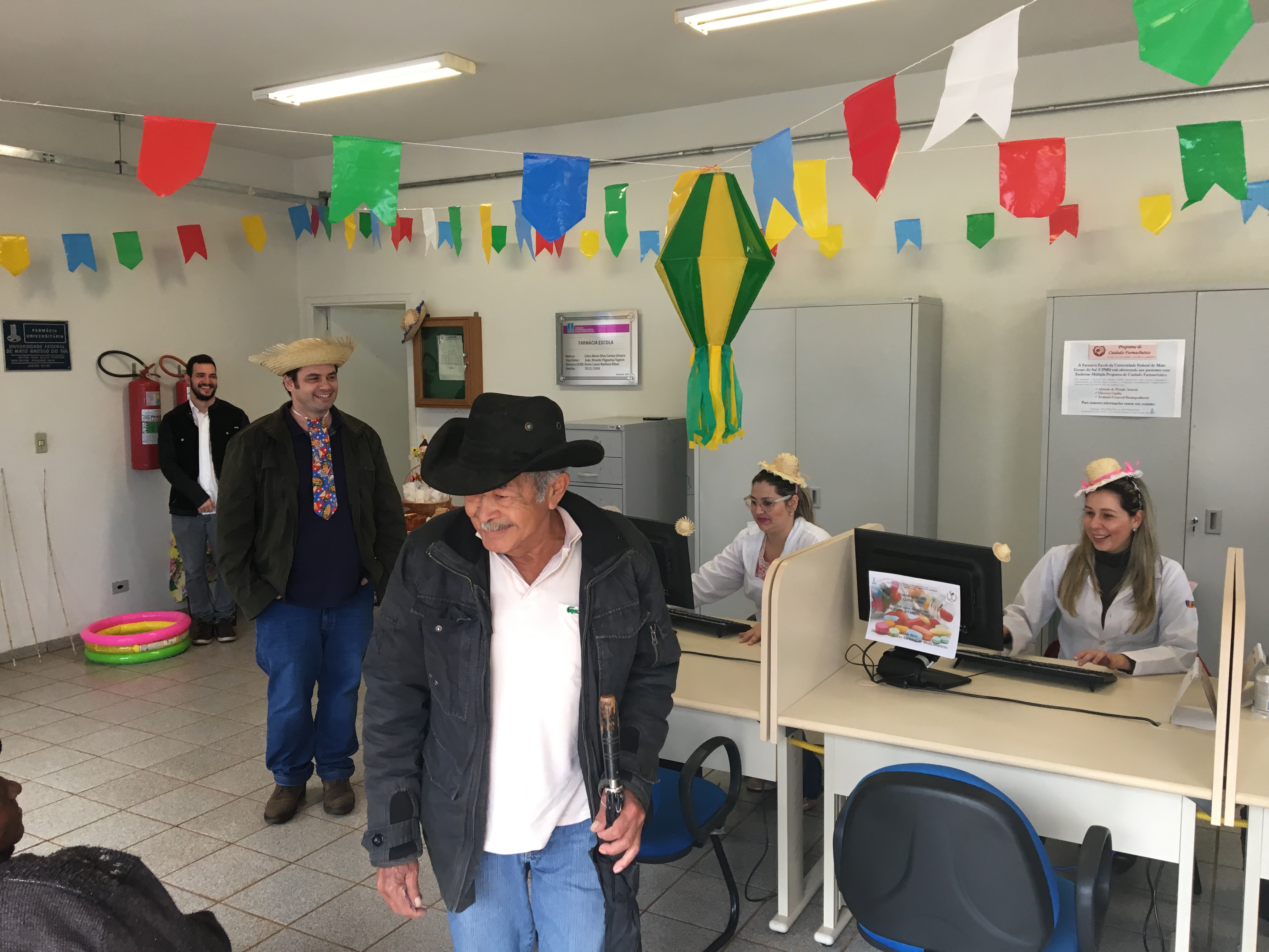 “O objetivo principal desta Festa Junina é integrar os pacientes que são atendidos à Instituição e à Farmácia. Geralmente, eles procuram a Farmácia para receber os medicamentos e as orientações e a nossa ideia hoje foi justamente de proporcionar um momento de entretenimento junto aos servidores da Universidade”, diz o coordenador da Farmácia Escola, professor Teófilo Fernando Mazon Cardoso.