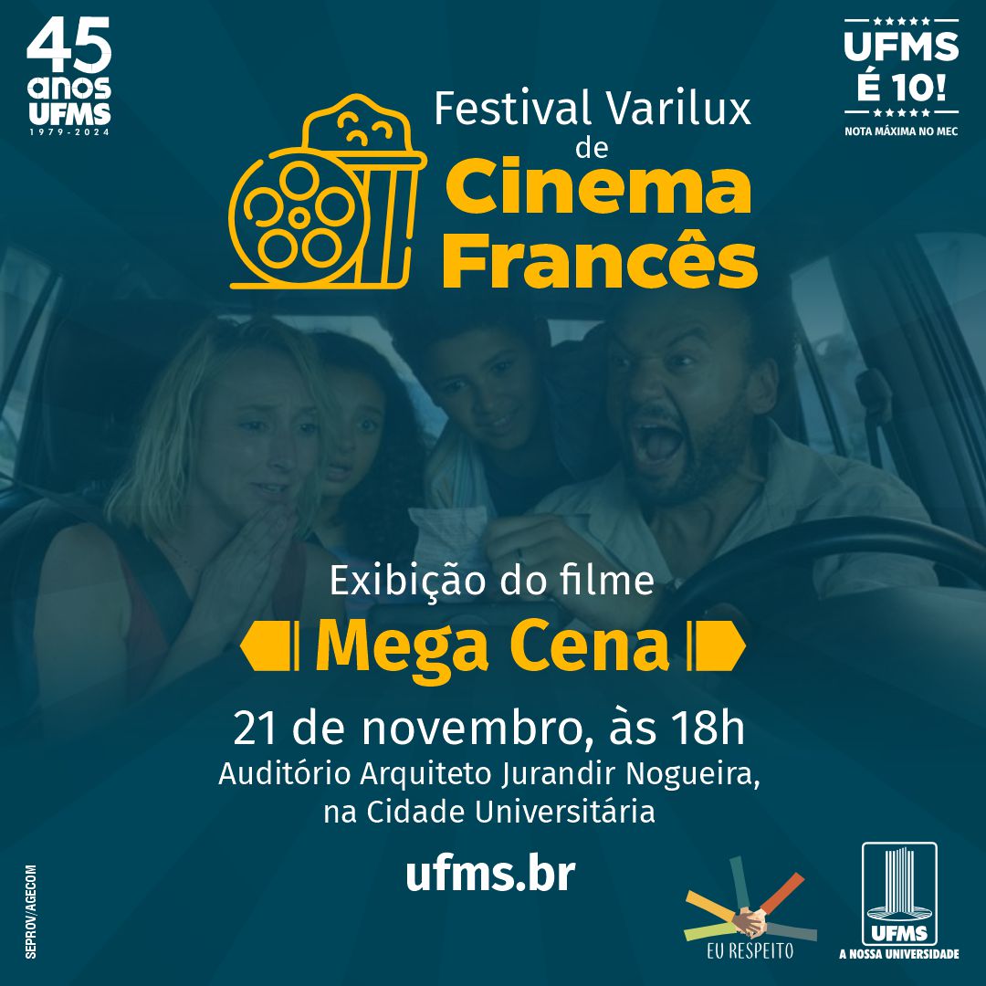 O Festival Varilux de Cinema Francês fará uma exibição do filme Mega Cena na Universidade. A atividade, promovida pela Secretaria de Relações Internacionais da Agência de Internacionalização e de Inovação e pelo Programa de Ensino de Línguas, será no dia 21 de novembro, às 18h, no auditório Arquiteto Jurandir Nogueira, na Cidade Universitária.
