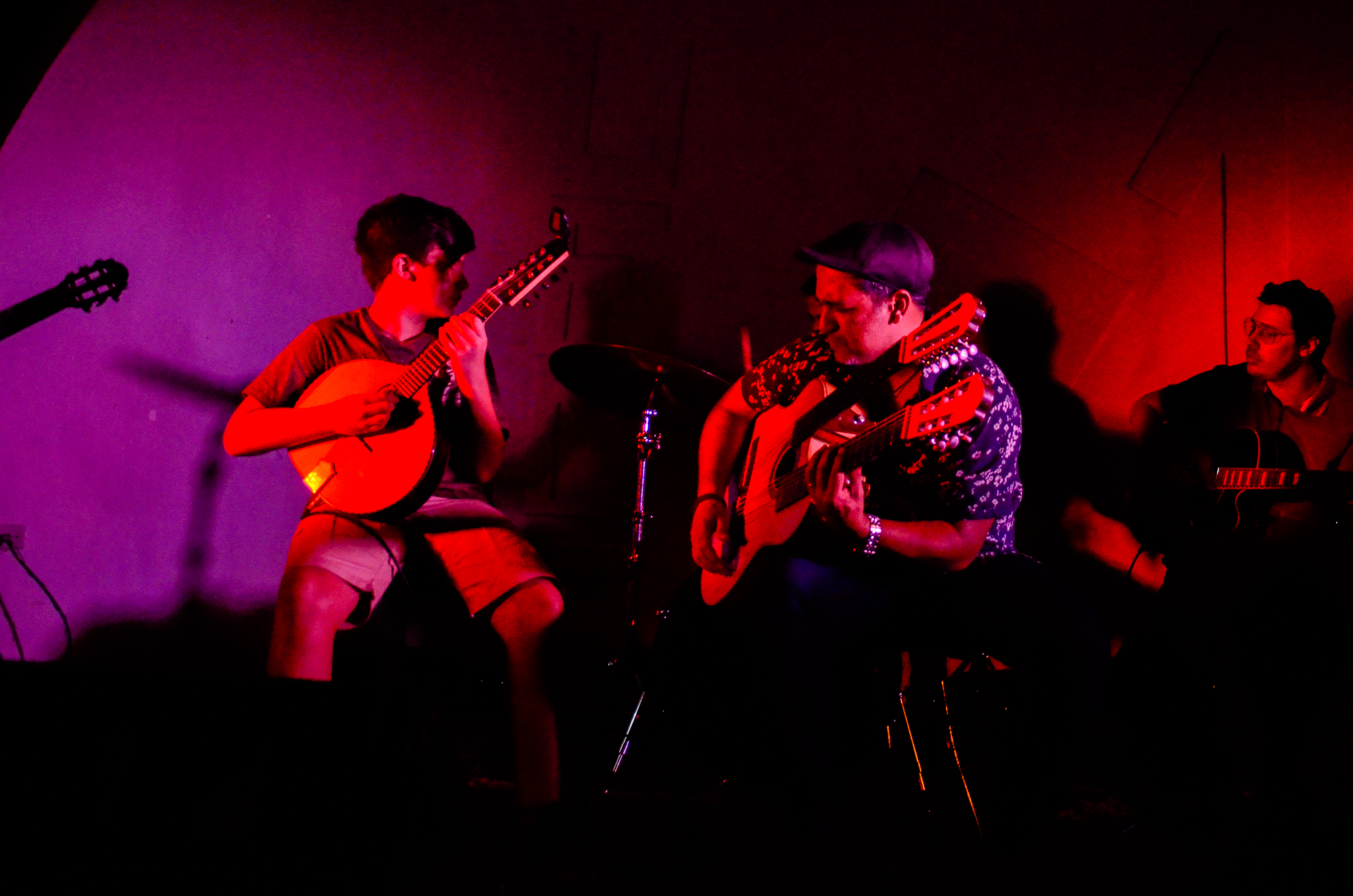 A Concha Acústica da UFMS foi palco para o multi-instrumentista Marcos Assunção mostrar sua arte na última quarta-feira (23). A noite foi marcada por solos de violão, além da apresentação do trio Chamamé Serrano, que fez com que a plateia dançasse ao som da música tradicional do estado de Mato Grosso do Sul e regiões fronteiriças.