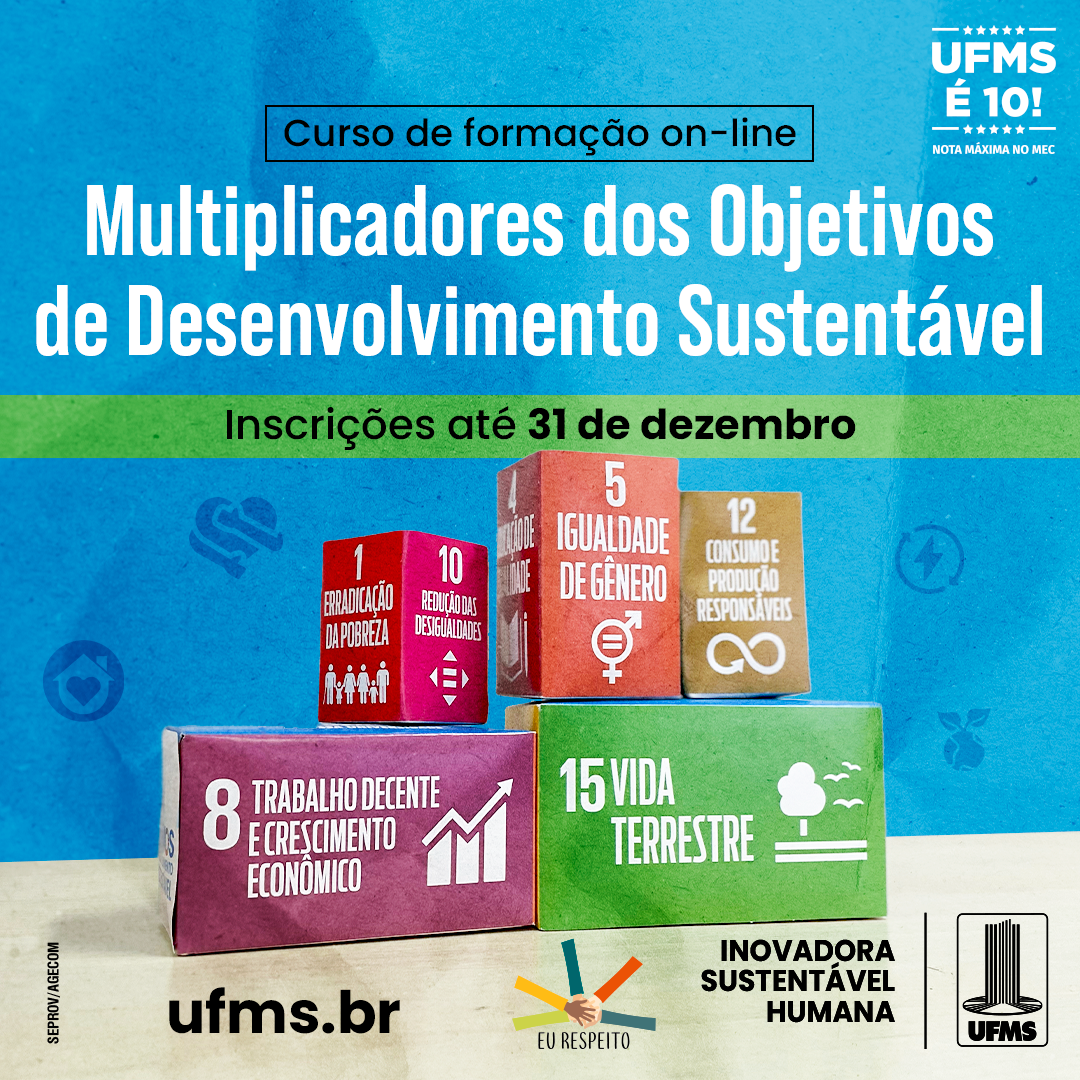 Abertas as inscrições, neste link, para o curso de formação de Multiplicadores dos Objetivos de Desenvolvimento Sustentável (ODS). A capacitação inédita, voltada para estudantes, servidores e para toda a população sul-mato-grossense, tem o objetivo de formar participantes capazes de disseminar práticas sustentáveis em diferentes áreas de atuação. A atividade gratuita e on-line tem carga horária de 20h e fornecerá certificação para os inscritos.