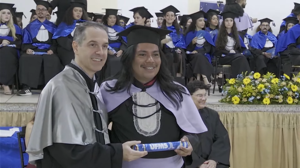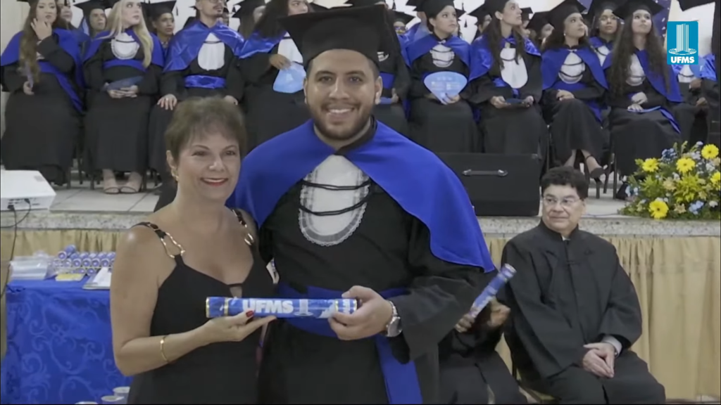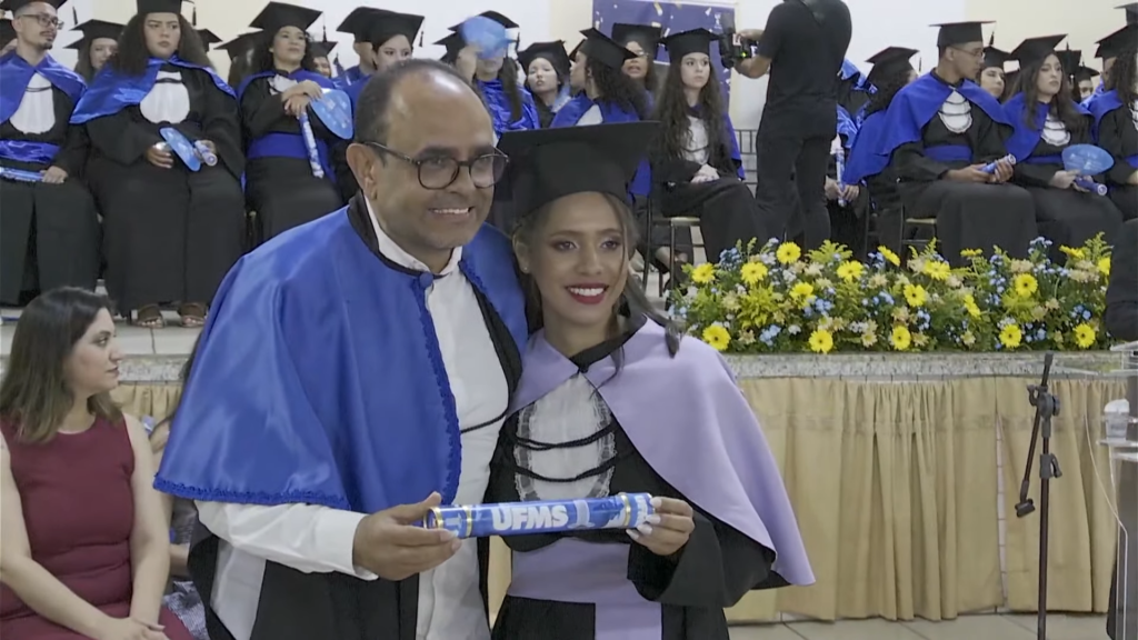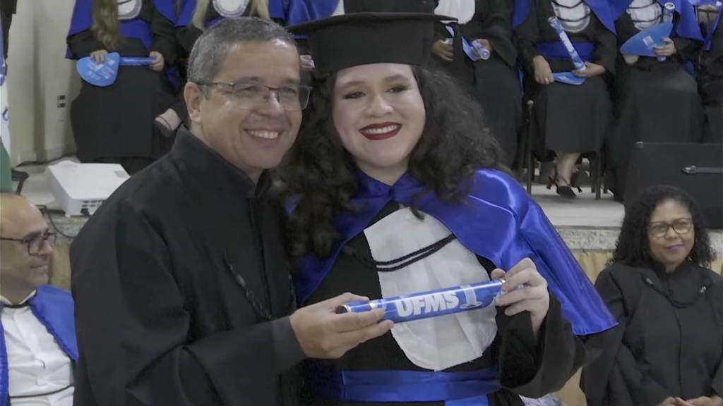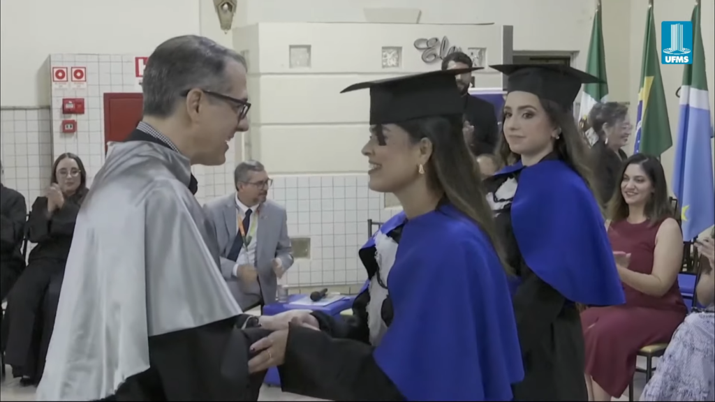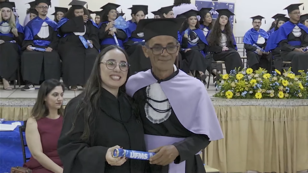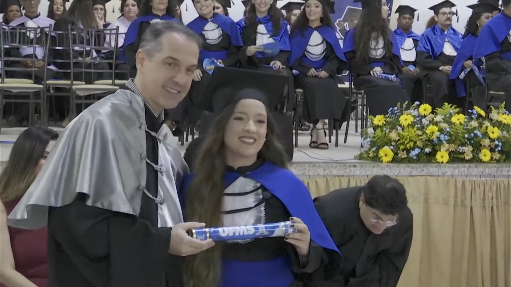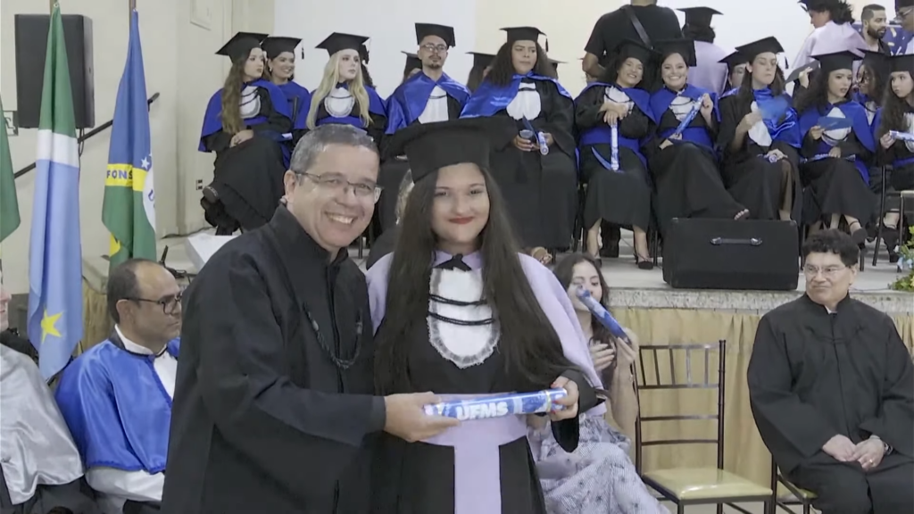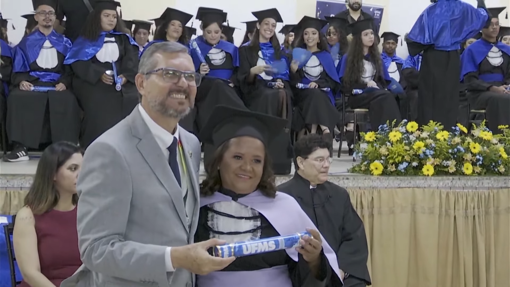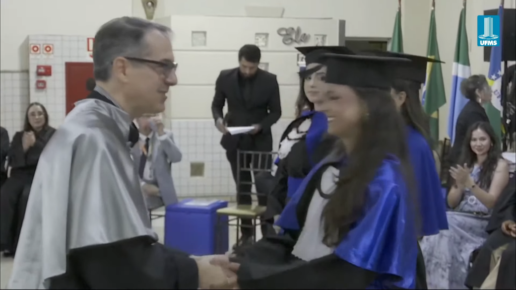 O pró-reitor de Assuntos Estudantis (Proaes), Edilson Zafalon, presidiu a cerimônia e ressaltou que a formatura representa a concretização do esforço dos estudantes e o início de uma trajetória profissional. “Queridos formandos, desejo a cada um uma trajetória profissional brilhante. Não se acomodem: o aprendizado não termina aqui. Invistam sempre em aperfeiçoamento, busquem a inovação e mantenham a ética como fundamento de todas as escolhas. O verdadeiro êxito é aquele que não beneficia apenas a própria carreira, mas também contribui para a sociedade. Sejam profissionais capazes de transformar realidades”, aconselhou. O pró-reitor também falou sobre realizações pessoais. “A carreira tem seu valor, mas a vida vai além dela. Cultivem seus vínculos, cuidem do bem-estar e da saúde mental. O equilíbrio entre a seriedade profissional e a leveza do cotidiano é essencial para uma vida plena. Sigam adiante com confiança. O mundo aguarda o talento de vocês. A UFMS se orgulha de cada formando e os recebe como seus mais novos profissionais de excelência. Parabéns por essa conquista”, disse.