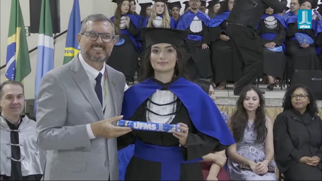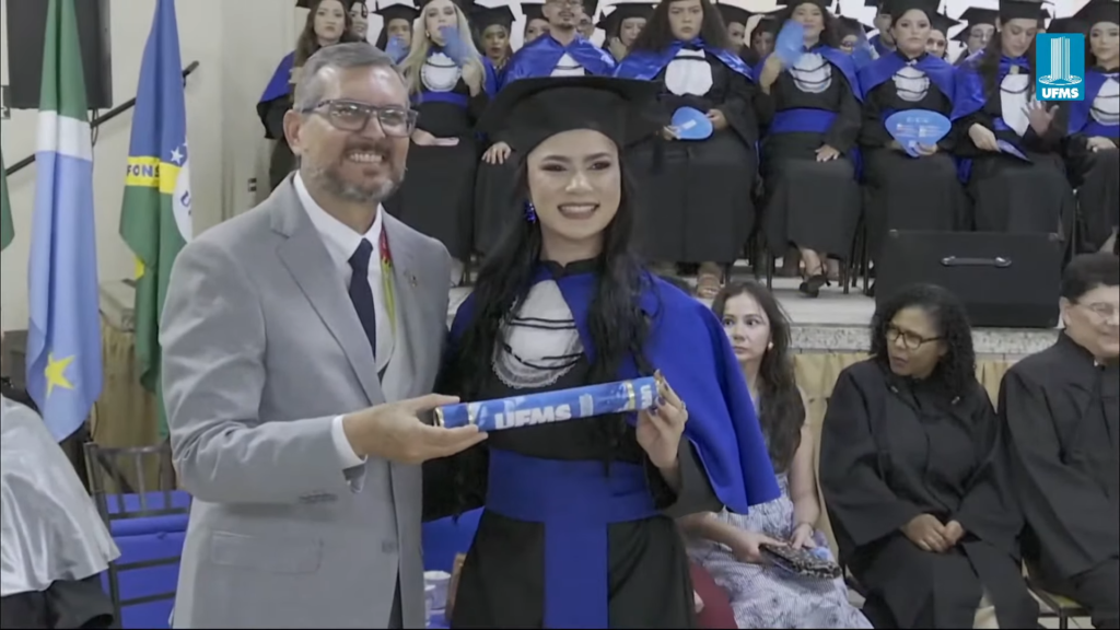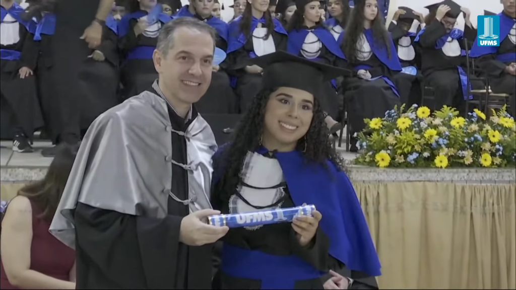A reitora Camila Ítavo deixou uma mensagem aos formandos presentes na cerimônia. “Hoje é um dia muito especial em que a gente comemora as conquistas da UFMS de Naviraí. Estou muito feliz com a inauguração de novos espaços, mas em especial com a apresentação dos nossos formandos e formandas da UFMS de Naviraí, nesse momento que será presidido pelo nosso pró-reitor de Assuntos Estudantis”, celebrou. “Desejo uma excelente cerimônia para todos e reforço meu agradecimento a toda professora, a todo professor, aos nossos queridos técnicos, aos nossos queridos estudantes pela dedicação empreendida na jornada de formação de cada um de vocês. Que vocês tenham muito sucesso e que carreguem no seu coração, assim como eu carrego, como egressa, o fato de que a partir de hoje, para sempre, seremos UFMS. Parabéns e hoje a festa é de vocês e de suas famílias”, discursou.
