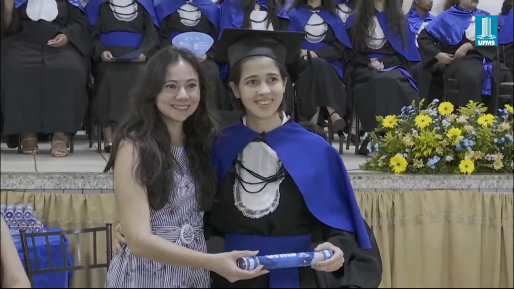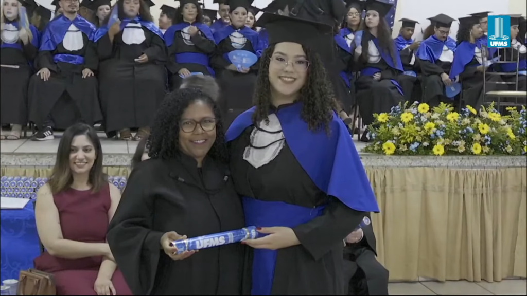 Paraninfa da turma de Arquitetura e Urbanismo, a professora Emeli Lalesca Aparecida da Guarda falou em nome de todos os homenageados da noite. “Hoje, eu tenho a honra e a profunda alegria de representar os professores homenageados e falar em nome dos quatro cursos do nosso câmpus, Administração, Arquitetura e Urbanismo, Ciências Sociais e Pedagogia. Quatro áreas distintas, quatro modos de interpretar a realidade, quatro formas de transformar o mundo. Hoje, que vocês celebrem muito. Celebrem o esforço, as noites difíceis, a persistência, o apoio da família, dos amigos, dos colegas que acreditaram em vocês a quem se tornaram. Nada disso foi em vão. Nós, professores, seguimos muito orgulhosos. Porque cada um de vocês leva um pedacinho da nossa trajetória, da nossa história. Que aquilo que aprenderam aqui continue ecoando na vida real de vocês. Uma vez UFMS, sempre UFMS. Parabéns para cada um de vocês, sucesso”, discursou.