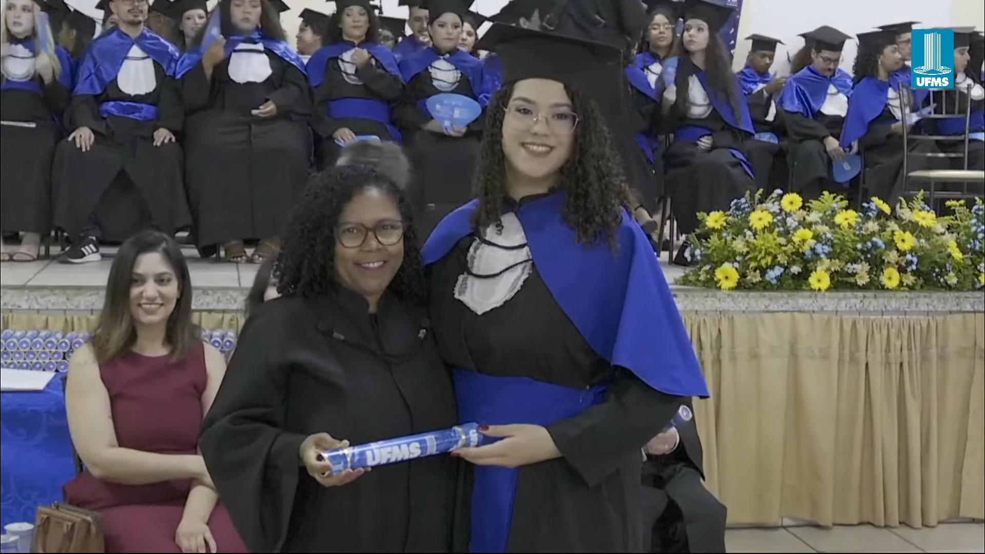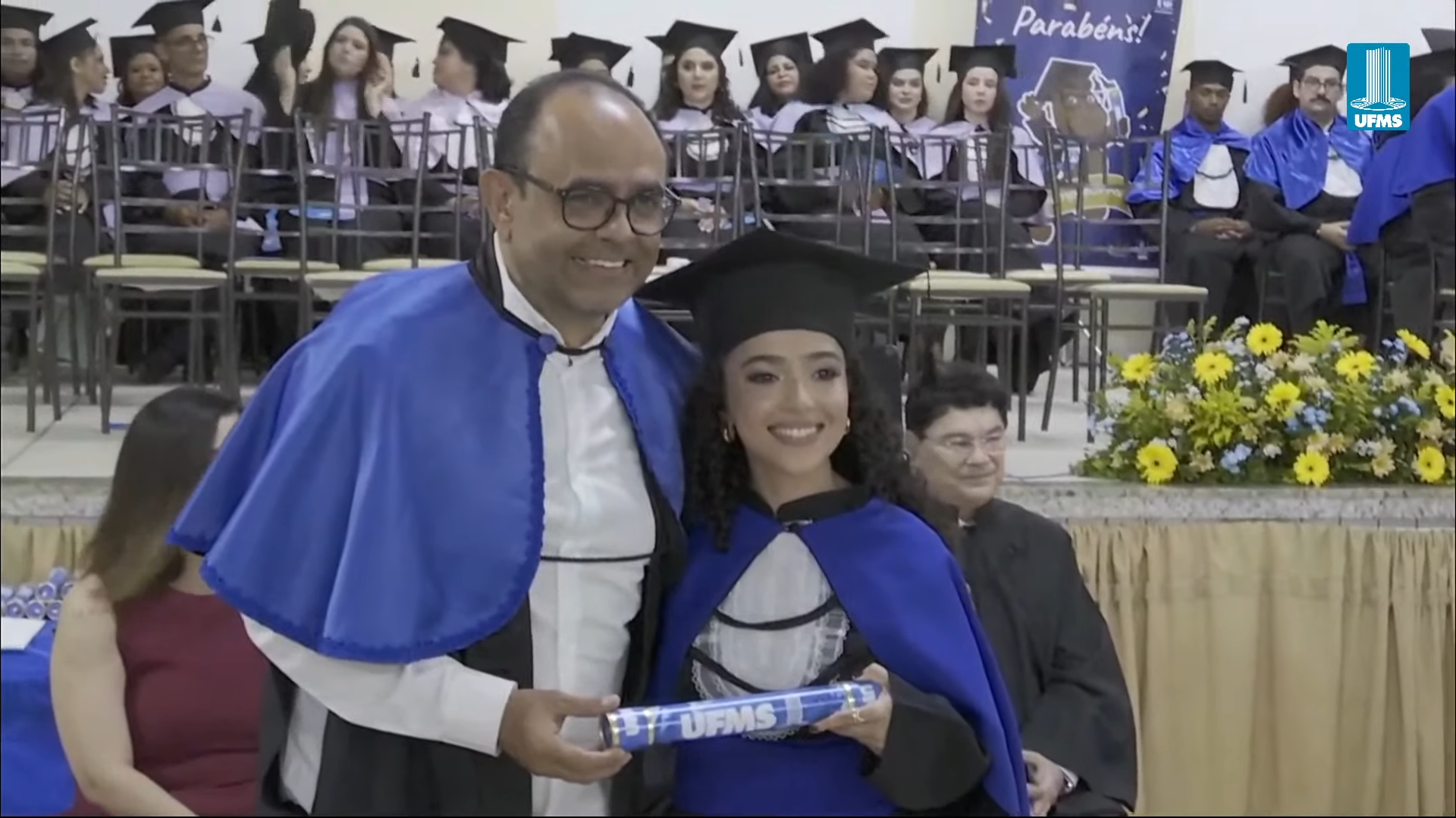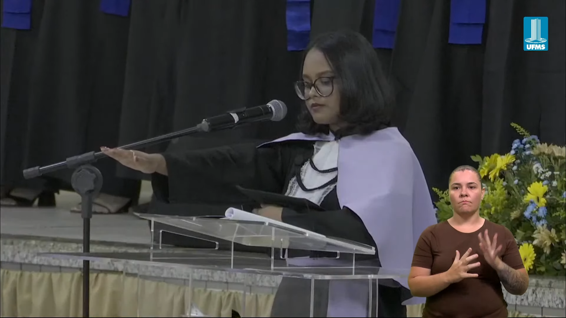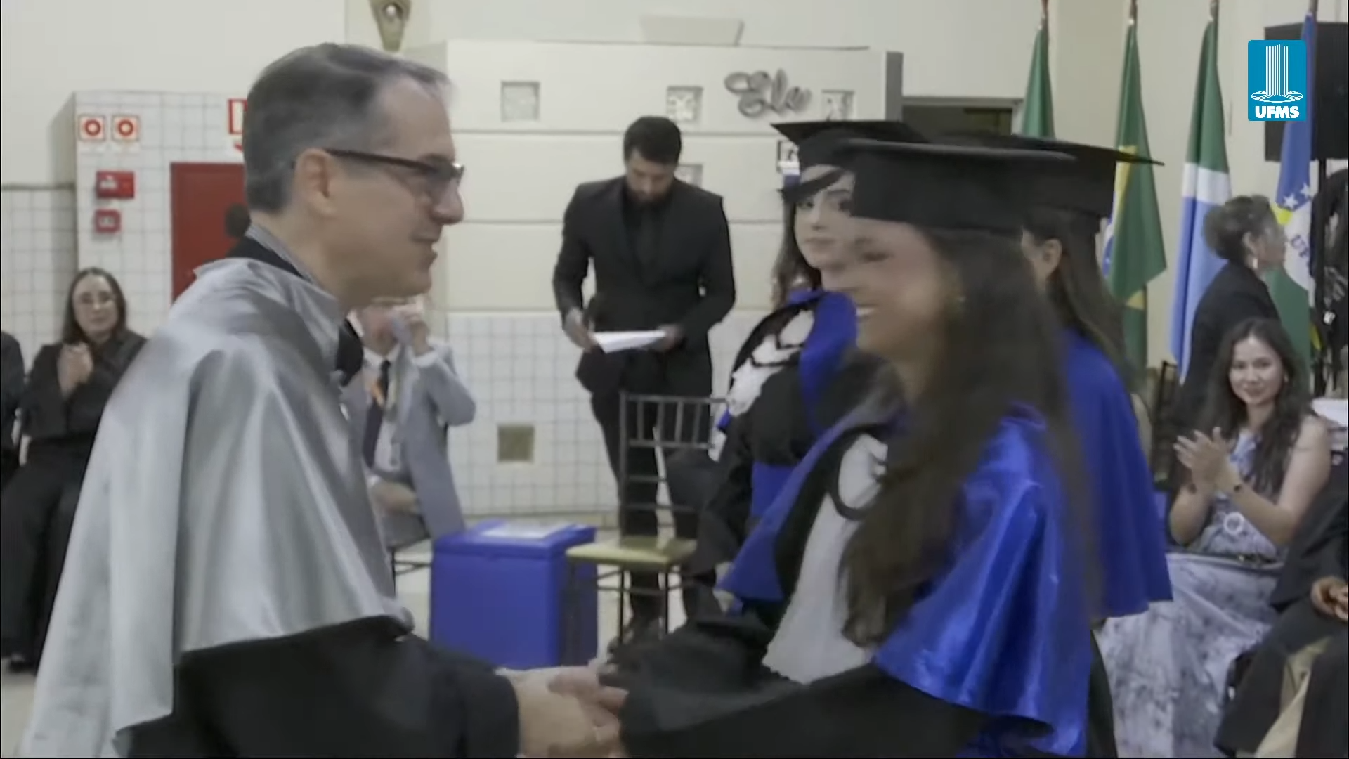 A reitora Camila Ítavo deixou uma mensagem aos formandos presentes na cerimônia. “Hoje é um dia muito especial em que a gente comemora as conquistas da UFMS de Naviraí. Estou muito feliz com a inauguração de novos espaços, mas em especial com a apresentação dos nossos formandos e formandas da UFMS de Naviraí, nesse momento que será presidido pelo nosso pró-reitor de Assuntos Estudantis”, celebrou. “Desejo uma excelente cerimônia para todos e reforço meu agradecimento a toda professora, a todo professor, aos nossos queridos técnicos, aos nossos queridos estudantes pela dedicação empreendida na jornada de formação de cada um de vocês. Que vocês tenham muito sucesso e que carreguem no seu coração, assim como eu carrego, como egressa, o fato de que a partir de hoje, para sempre, seremos UFMS. Parabéns e hoje a festa é de vocês e de suas famílias”, discursou.