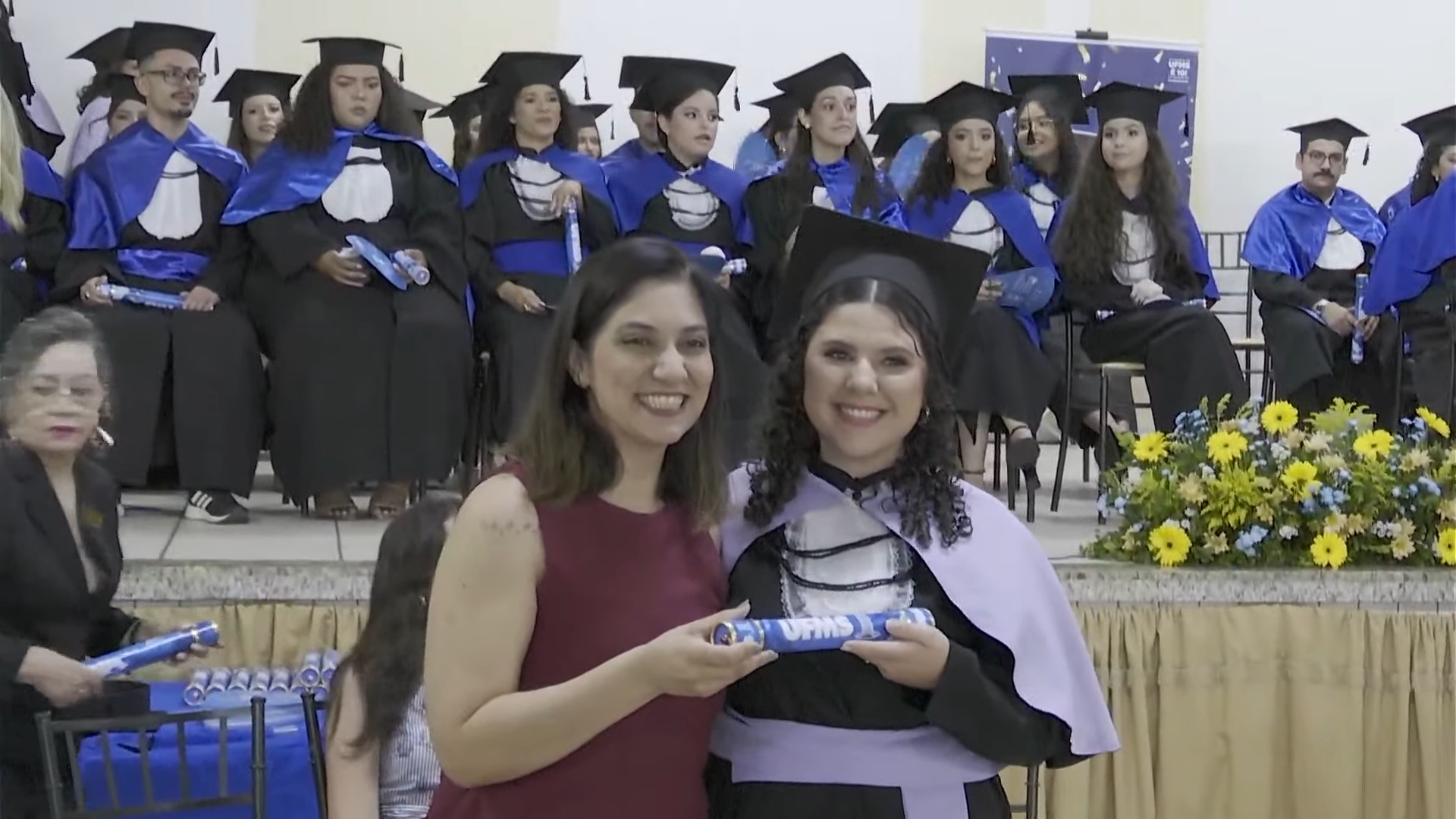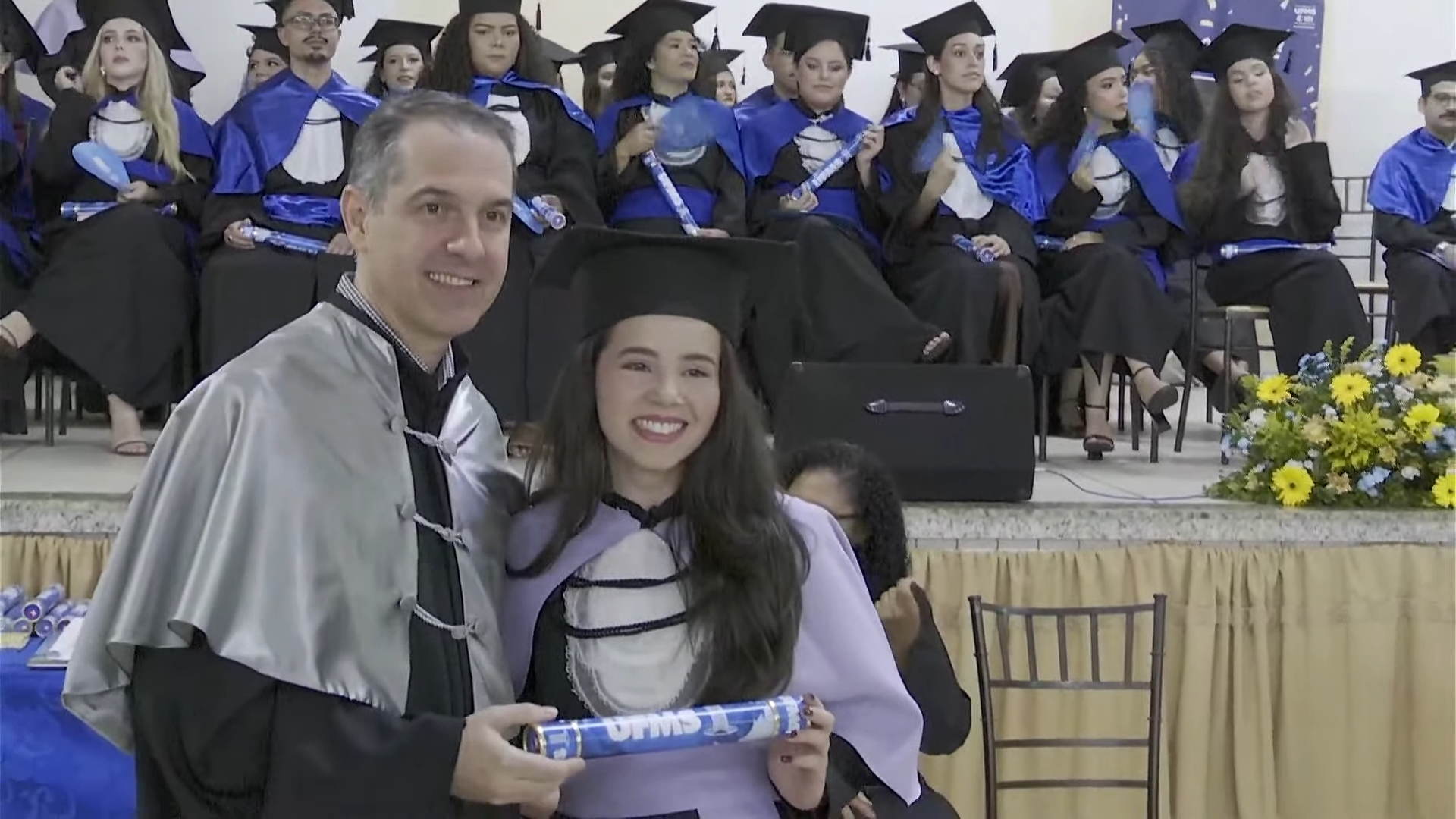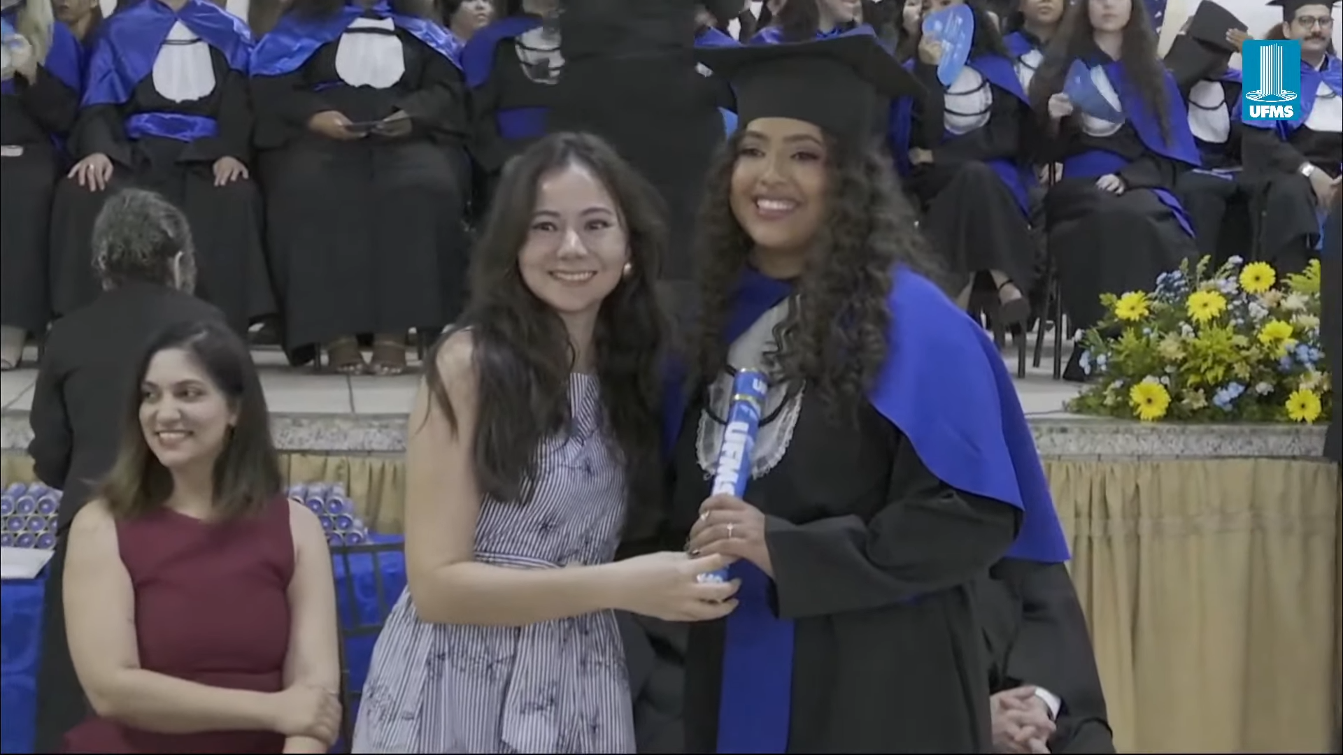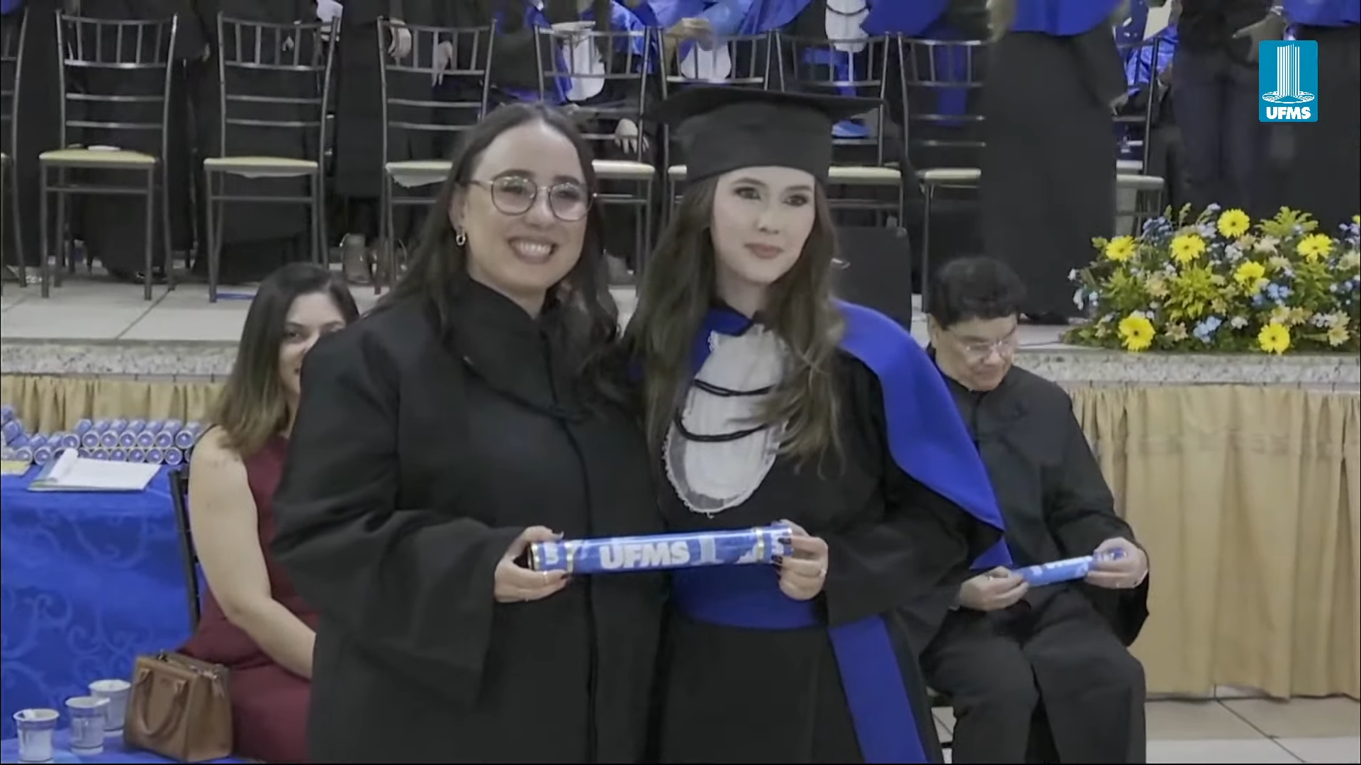 A reitora Camila Ítavo deixou uma mensagem aos formandos presentes na cerimônia. “Hoje é um dia muito especial em que a gente comemora as conquistas da UFMS de Naviraí. Estou muito feliz com a inauguração de novos espaços, mas em especial com a apresentação dos nossos formandos e formandas da UFMS de Naviraí, nesse momento que será presidido pelo nosso pró-reitor de Assuntos Estudantis”, celebrou. “Desejo uma excelente cerimônia para todos e reforço meu agradecimento a toda professora, a todo professor, aos nossos queridos técnicos, aos nossos queridos estudantes pela dedicação empreendida na jornada de formação de cada um de vocês. Que vocês tenham muito sucesso e que carreguem no seu coração, assim como eu carrego, como egressa, o fato de que a partir de hoje, para sempre, seremos UFMS. Parabéns e hoje a festa é de vocês e de suas famílias”, discursou.
