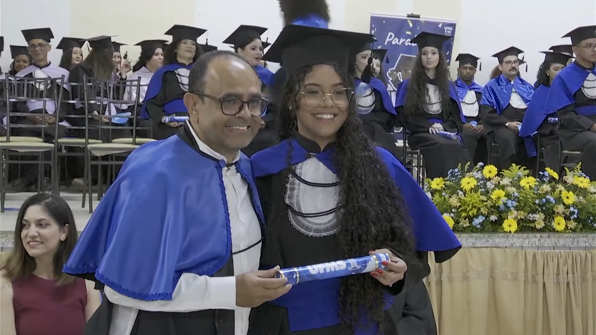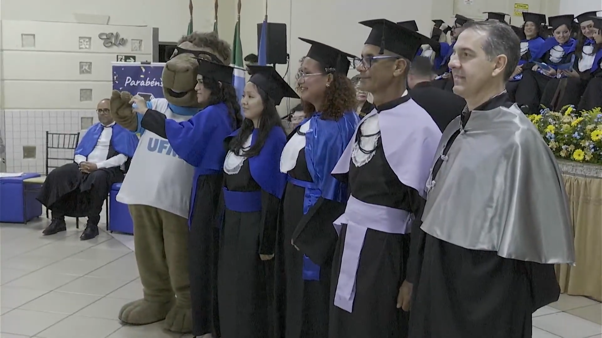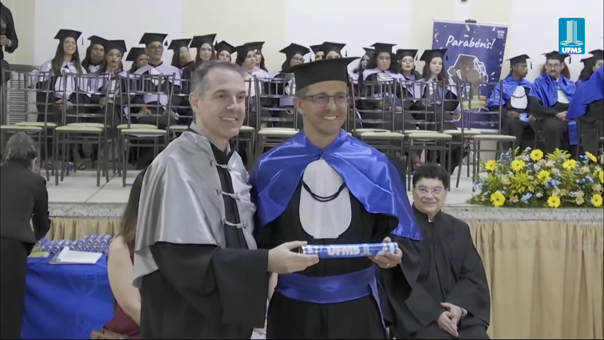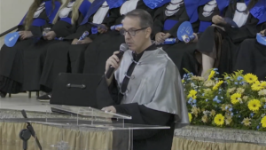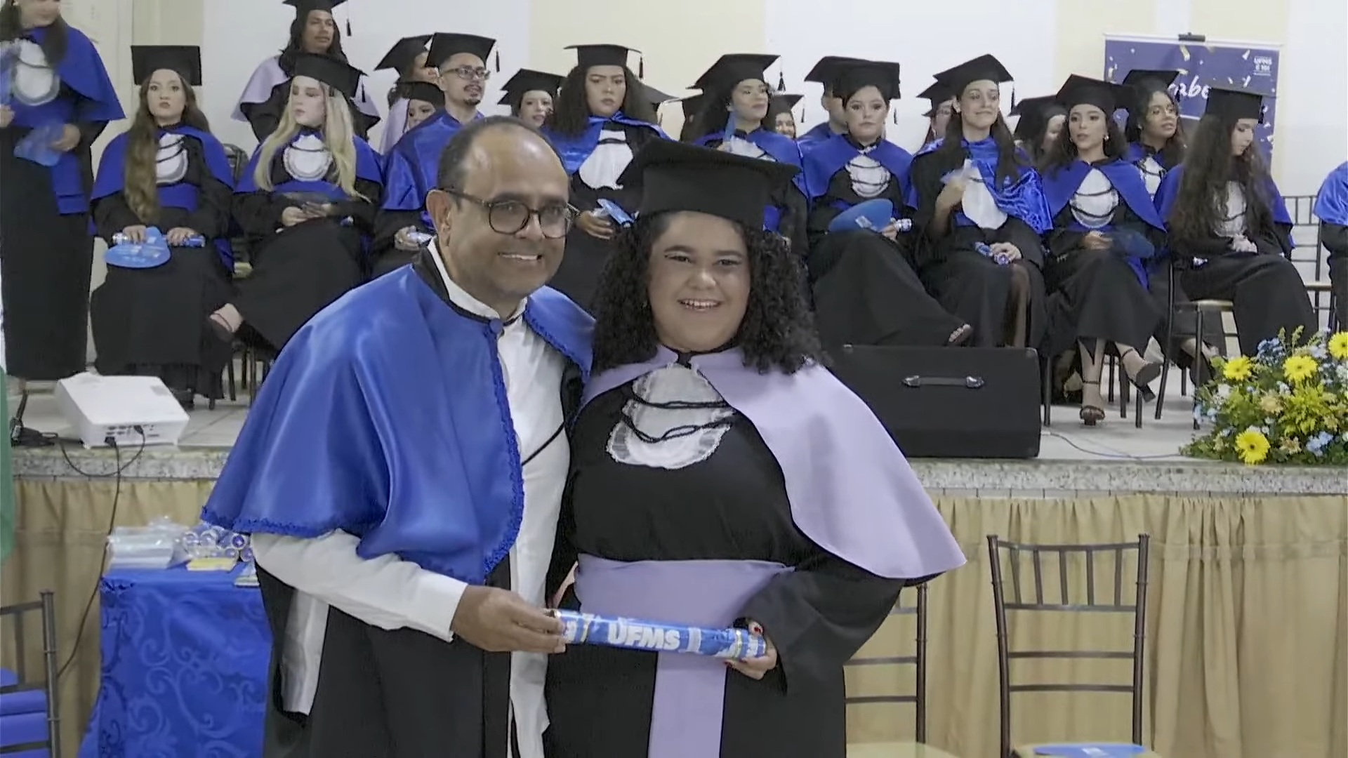 O pró-reitor de Assuntos Estudantis (Proaes), Edilson Zafalon, presidiu a cerimônia e ressaltou que a formatura representa a concretização do esforço dos estudantes e o início de uma trajetória profissional. “Queridos formandos, desejo a cada um uma trajetória profissional brilhante. Não se acomodem: o aprendizado não termina aqui. Invistam sempre em aperfeiçoamento, busquem a inovação e mantenham a ética como fundamento de todas as escolhas. O verdadeiro êxito é aquele que não beneficia apenas a própria carreira, mas também contribui para a sociedade. Sejam profissionais capazes de transformar realidades”, aconselhou. O pró-reitor também falou sobre realizações pessoais. “A carreira tem seu valor, mas a vida vai além dela. Cultivem seus vínculos, cuidem do bem-estar e da saúde mental. O equilíbrio entre a seriedade profissional e a leveza do cotidiano é essencial para uma vida plena. Sigam adiante com confiança. O mundo aguarda o talento de vocês. A UFMS se orgulha de cada formando e os recebe como seus mais novos profissionais de excelência. Parabéns por essa conquista”, disse.