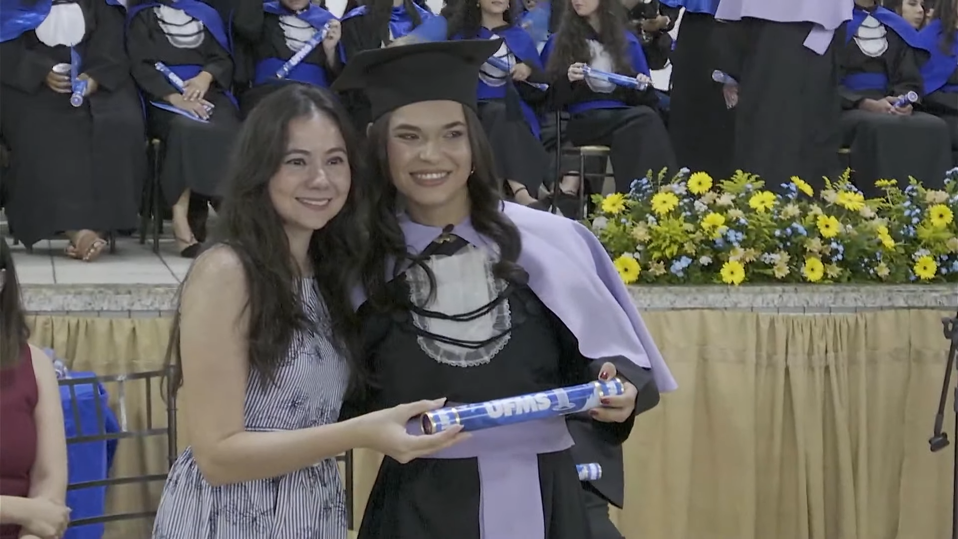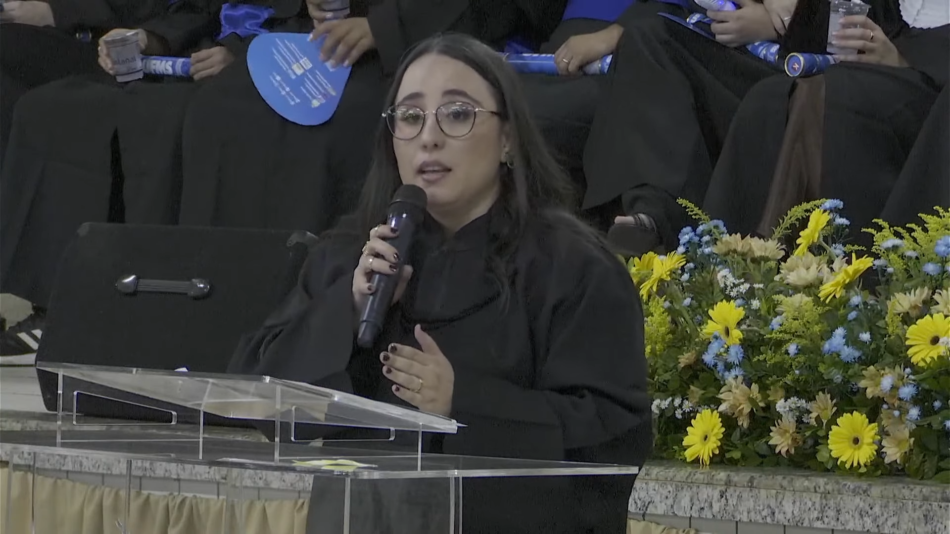 Paraninfa da turma de Arquitetura e Urbanismo, a professora Emeli Lalesca Aparecida da Guarda falou em nome de todos os homenageados da noite. “Hoje, eu tenho a honra e a profunda alegria de representar os professores homenageados e falar em nome dos quatro cursos do nosso câmpus, Administração, Arquitetura e Urbanismo, Ciências Sociais e Pedagogia. Quatro áreas distintas, quatro modos de interpretar a realidade, quatro formas de transformar o mundo. Hoje, que vocês celebrem muito. Celebrem o esforço, as noites difíceis, a persistência, o apoio da família, dos amigos, dos colegas que acreditaram em vocês a quem se tornaram. Nada disso foi em vão. Nós, professores, seguimos muito orgulhosos. Porque cada um de vocês leva um pedacinho da nossa trajetória, da nossa história. Que aquilo que aprenderam aqui continue ecoando na vida real de vocês. Uma vez UFMS, sempre UFMS. Parabéns para cada um de vocês, sucesso”, discursou.