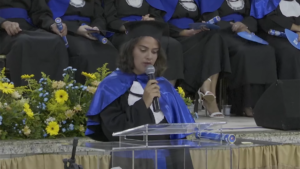 A licenciada em Ciências Sociais, Marina Faria dos Santos discursou em nome de todos concluintes da noite. “Nós podemos mudar, nos tornar alguém novo, experimentar coisas diferentes. Nada é definitivo, e nós temos o poder de decidir e construir uma vida que cada uma ama. Podemos ir da escuridão ao paraíso em um curto espaço de tempo. E, quando não soubermos para onde ir, vamos olhar para trás e lembrar, pelo menos, de onde viemos. Meus parabéns, formandos de 2025. O futuro começa agora”, pontuou.